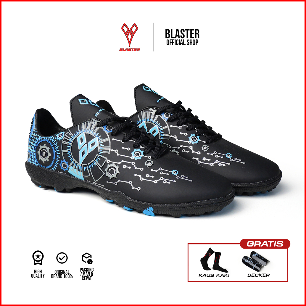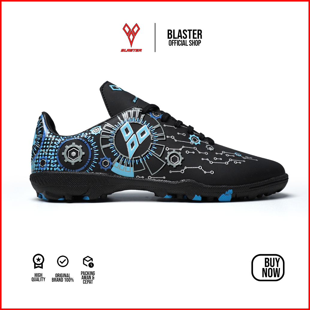 Blaster - Blitz Hitam Biru Sepatu Futsal Anak Dewasa Mini Soccer Sol Turf Gerigi Olahraga Outdoor