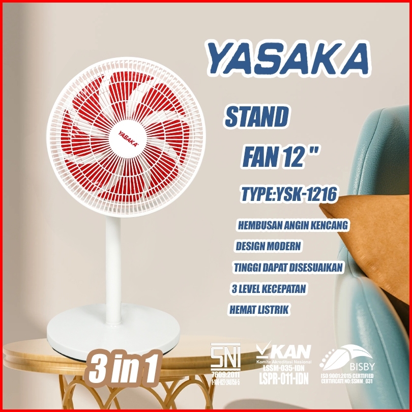 Kipas Angin Berdiri Yasaka 12 Inch Stand Fan 3 In1 Kipas Murah Elektronik Kipas Angin