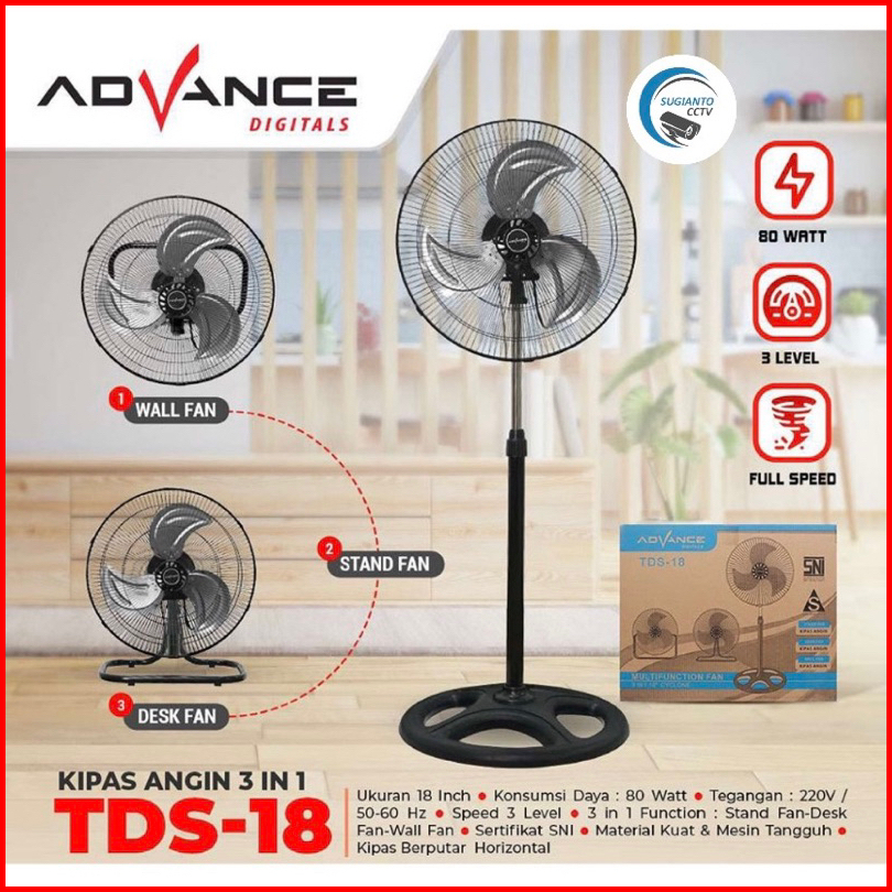 Kipas Angin Besi 18 Inch 3 In 1 Advance Stand Desk Wall Tds-18 Garansi Resmi Advance Dinding Meja Berdiri Murah