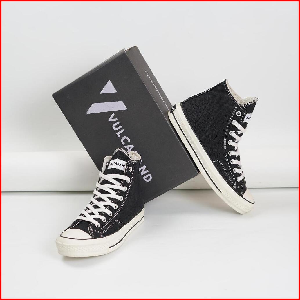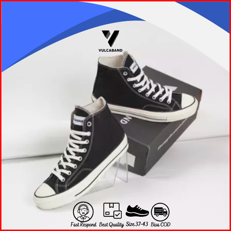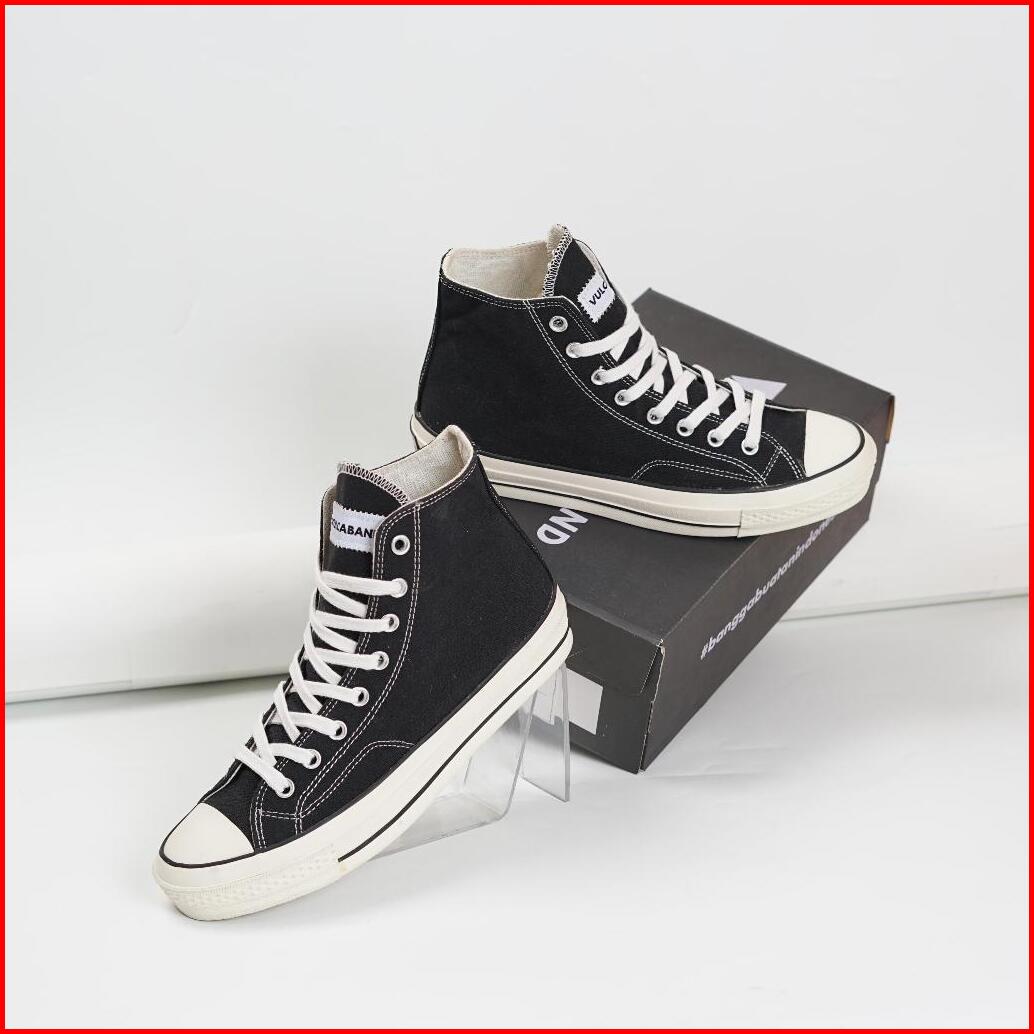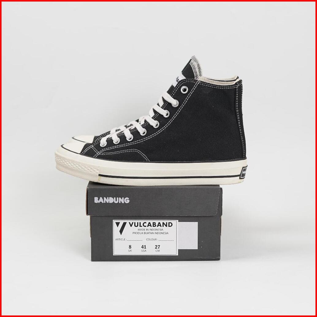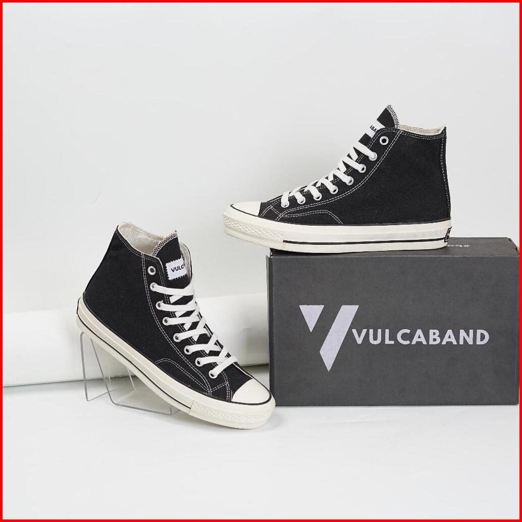 Sepatu Pria Wanita Sneakers Black High Original Casual Unisex Kasual Hitam Kanvas - Vulcaband Classic Vol 1 Hi Black Whi