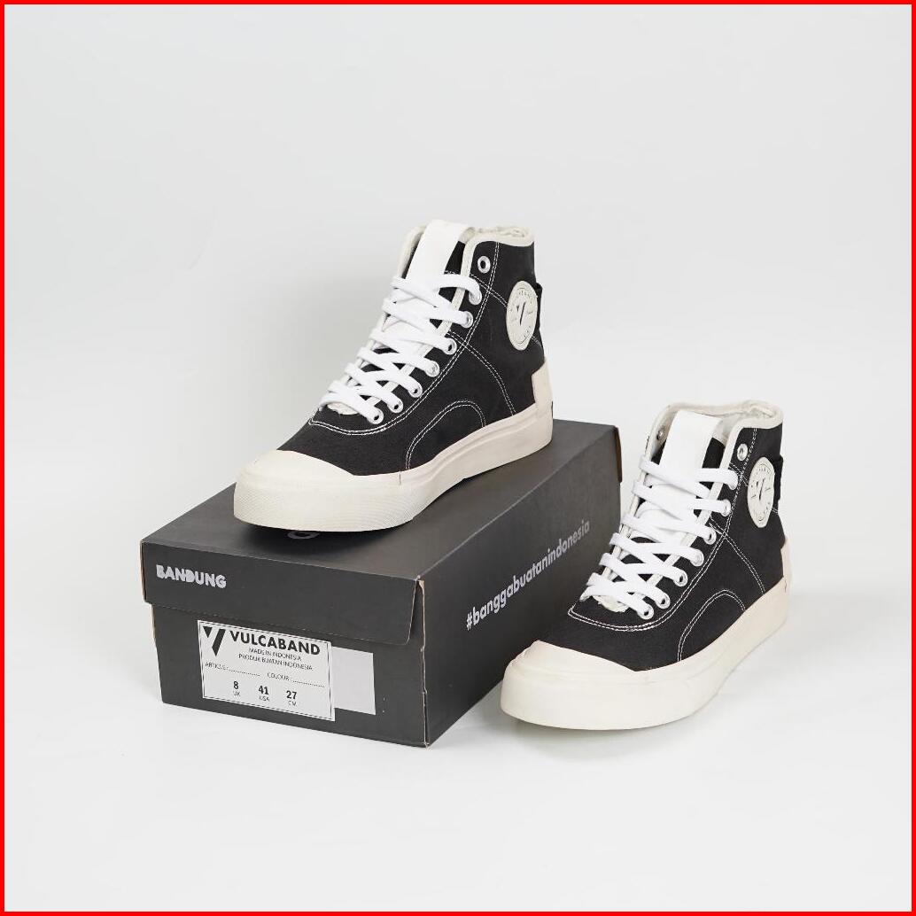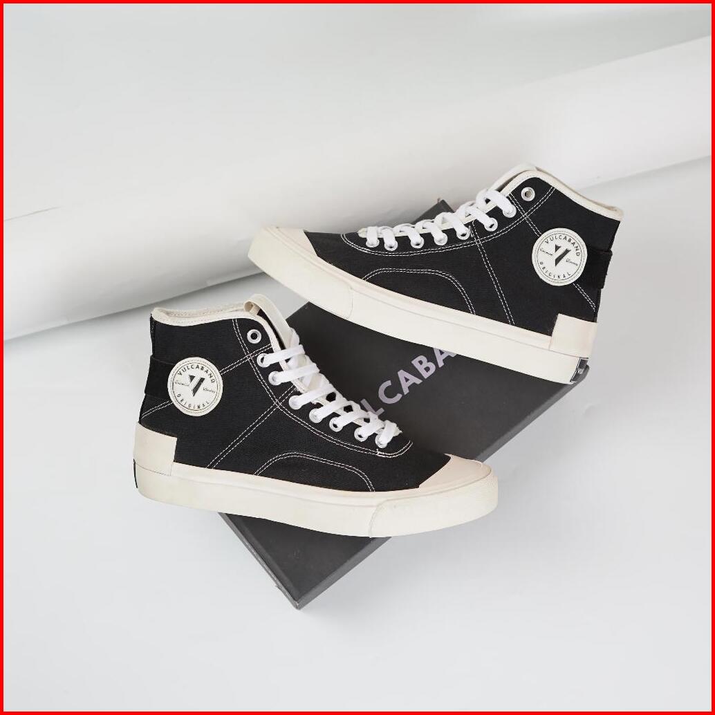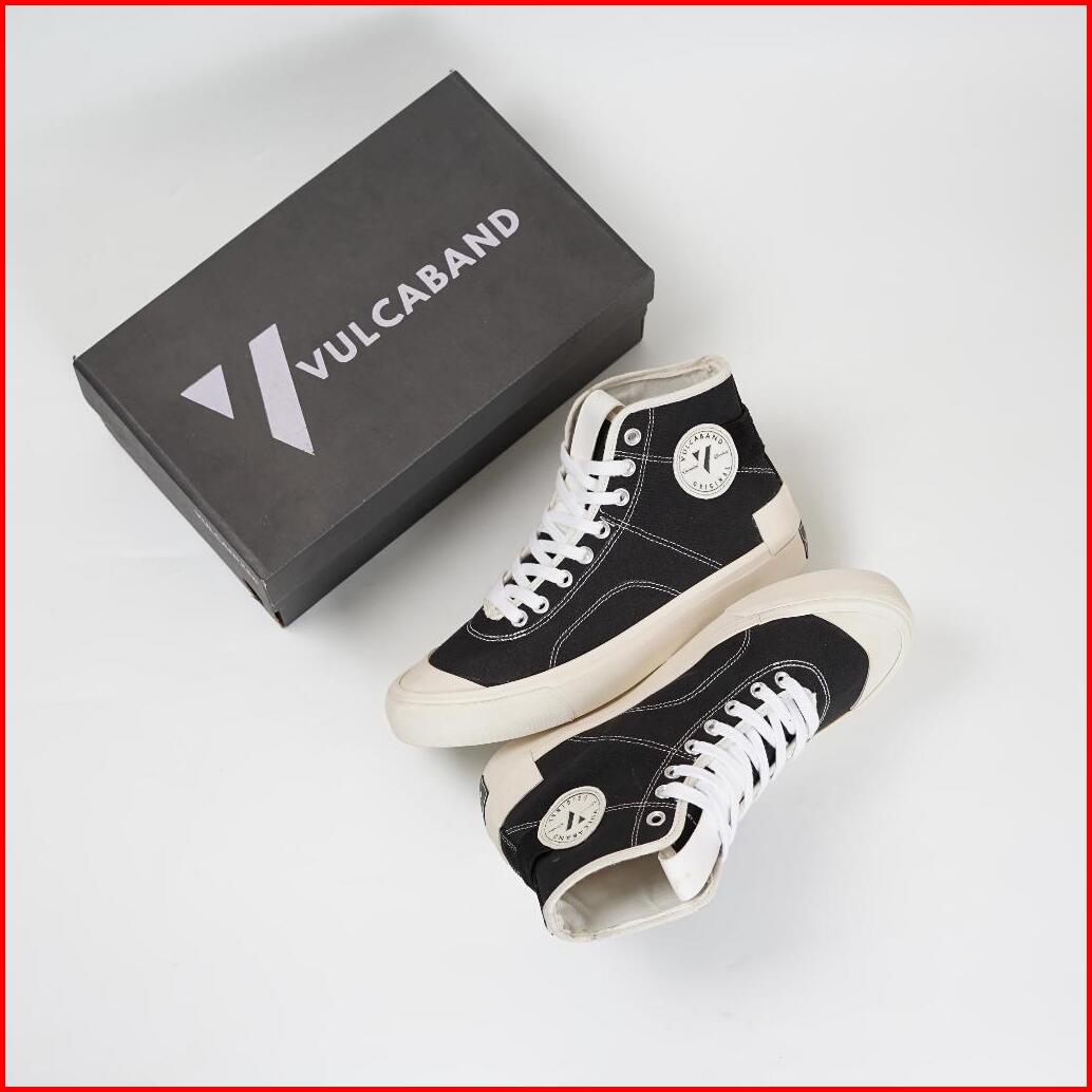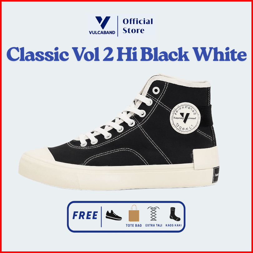 Sepatu Pria Wanita Sneakers Black High Original Casual Unisex Kasual Hitam Putih - Vulcaband Classic Vol 2 Hi Black Whit