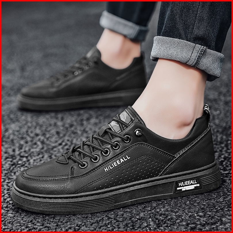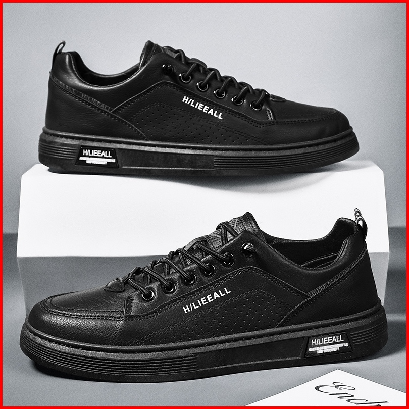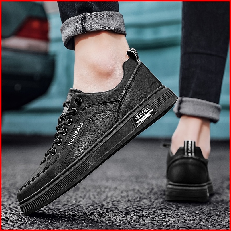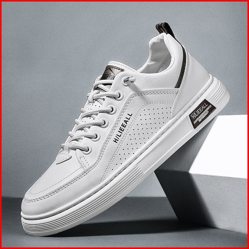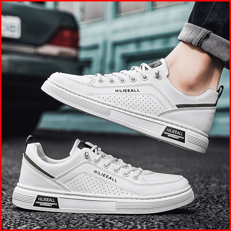 Sepatu Pria Formal Sneakers Original Muda Kekinian Tali Hitam Kulit Sepatu Shoes Putih