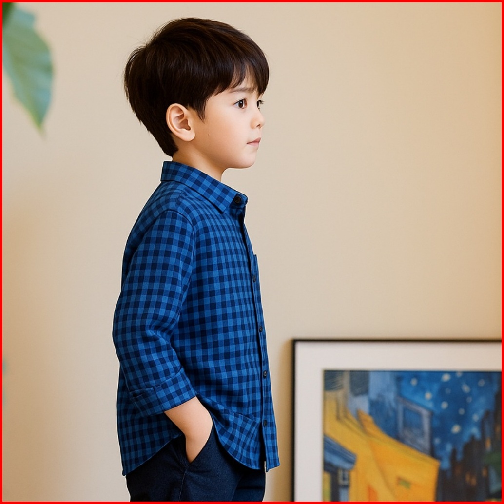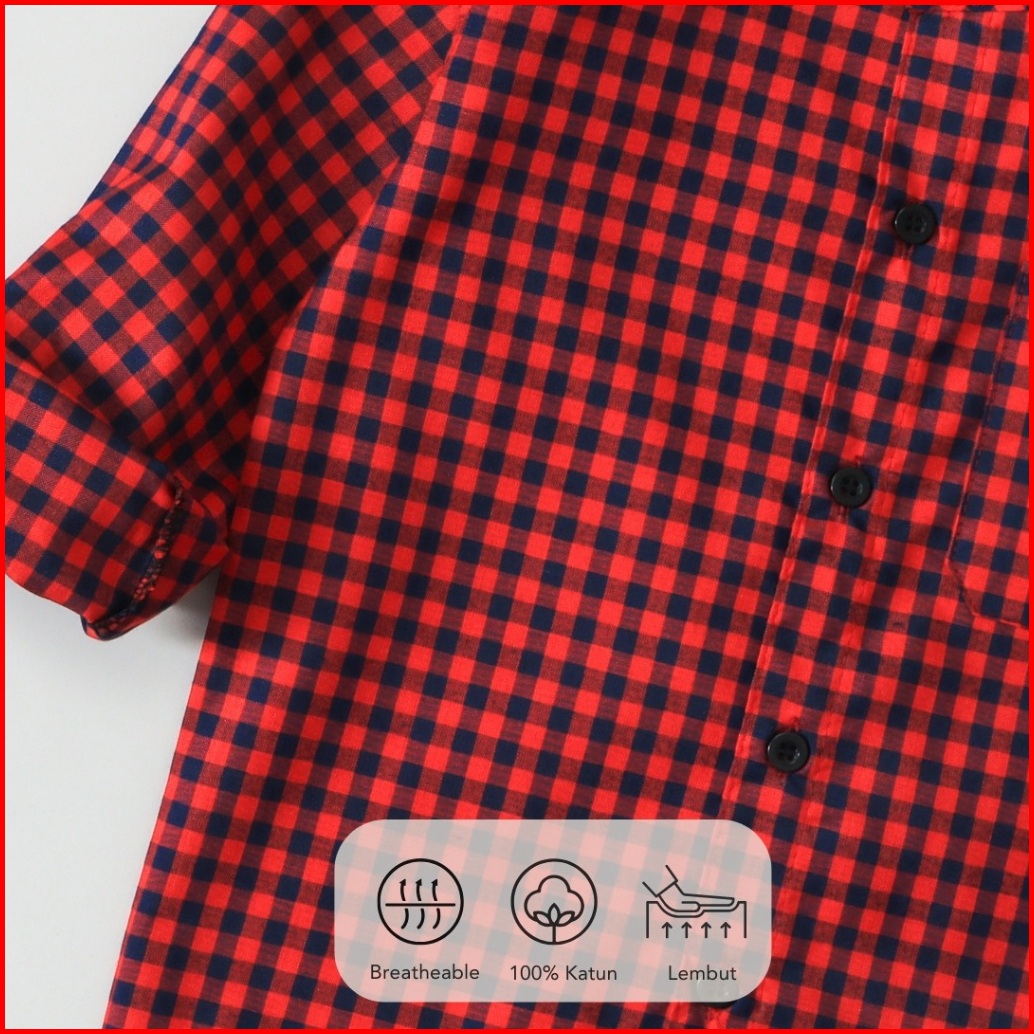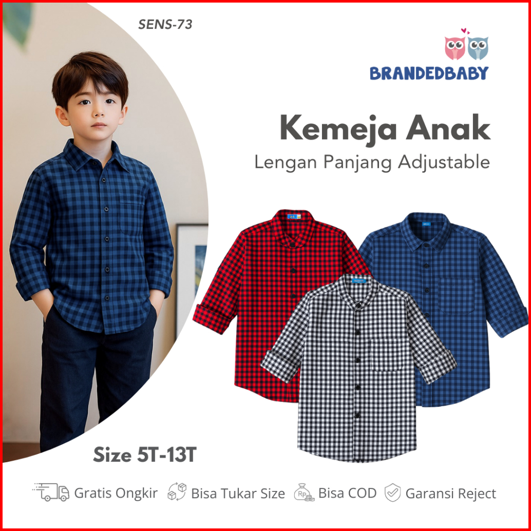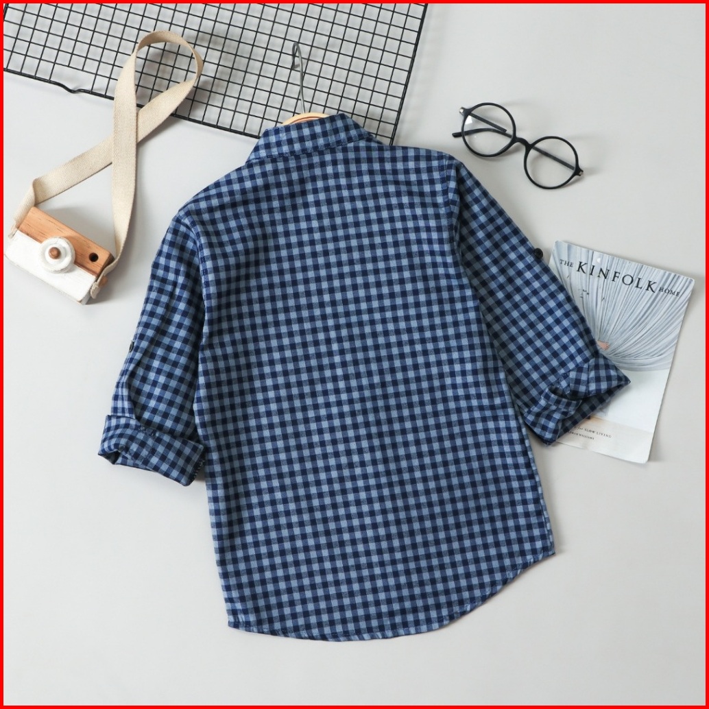 Brandedbaby 5t-13t Kemeja Anak Laki-laki Kerah Koko Shanghai Lengan Panjang Motif Kotak Kemko Fashion Korea Style Kekini