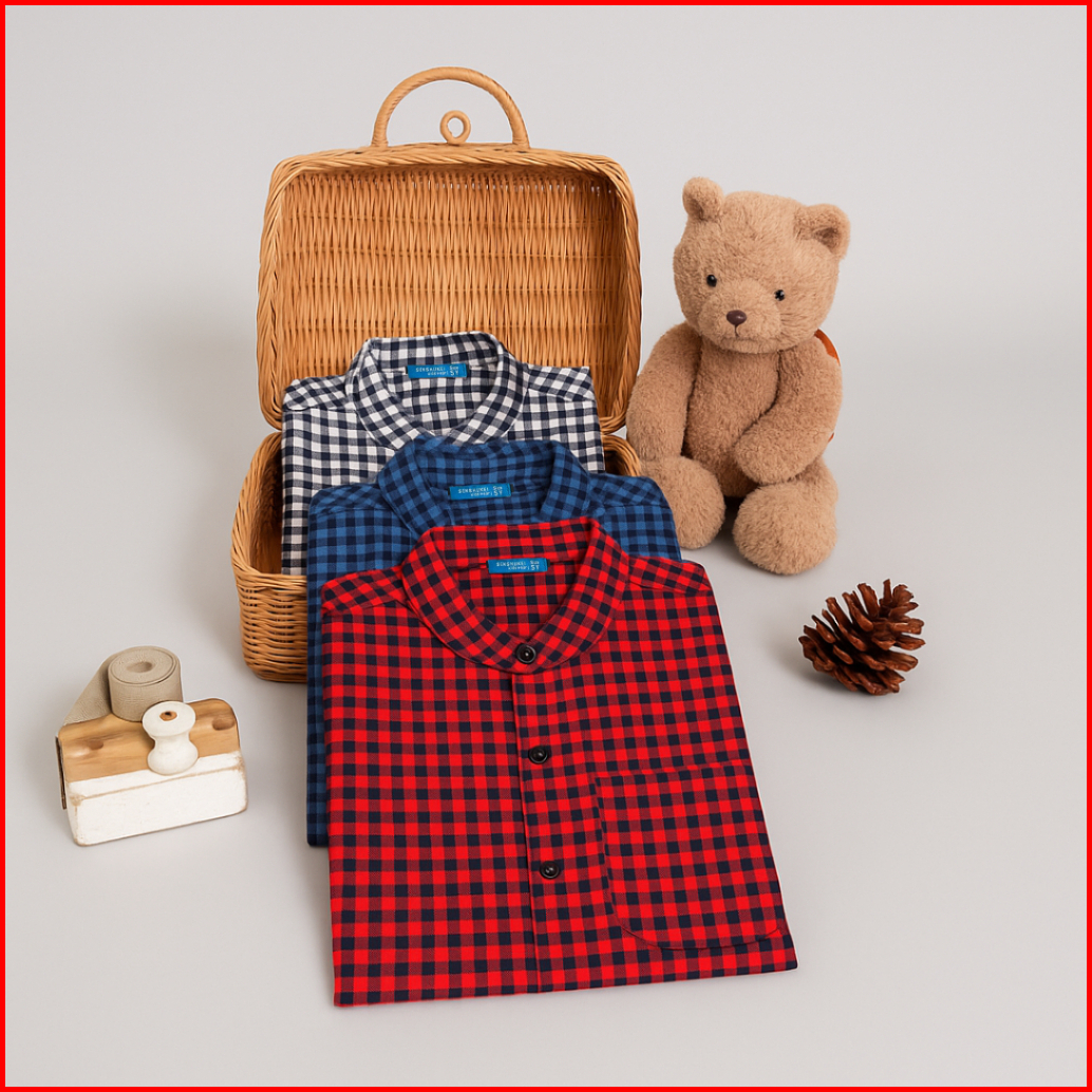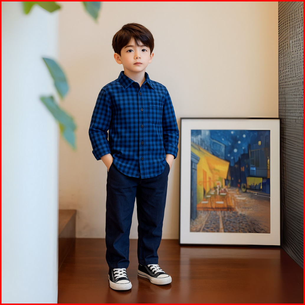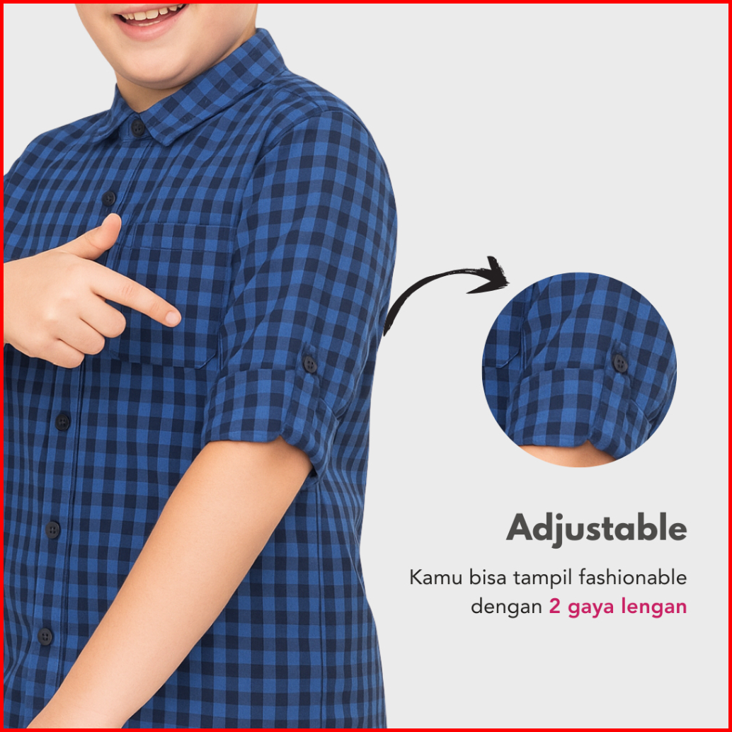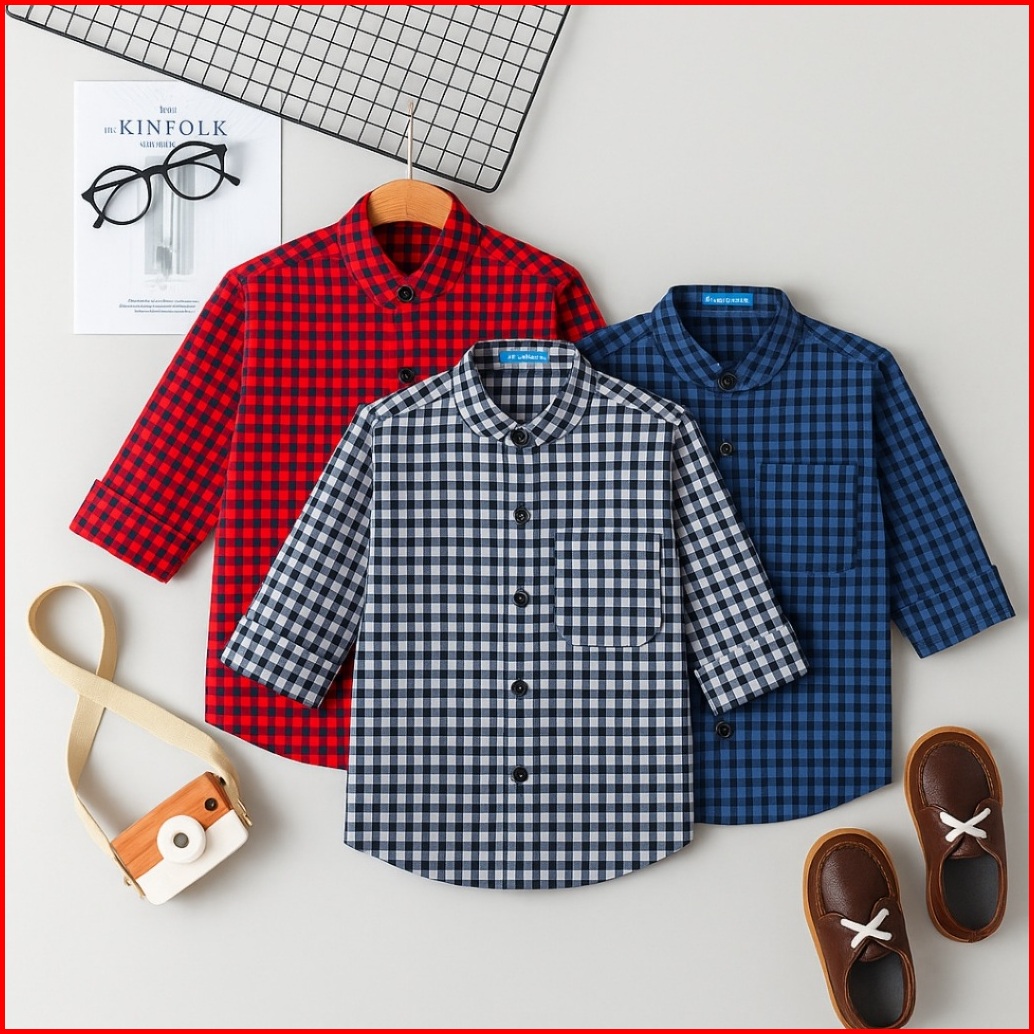 Brandedbaby 5t-13t Kemeja Anak Laki-laki Kerah Koko Shanghai Lengan Panjang Motif Kotak Kemko Fashion Korea Style Kekini