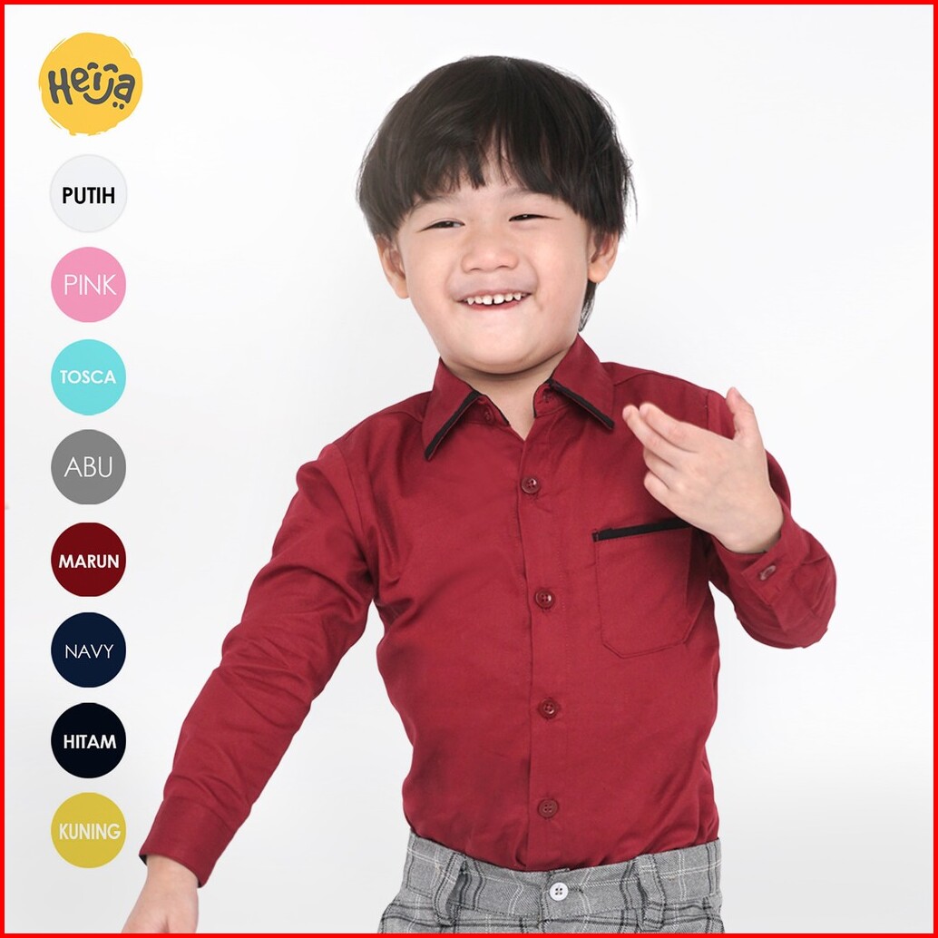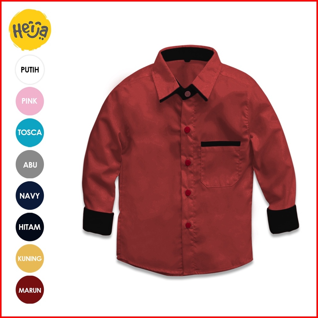 Heija - Kemeja Anak Laki - Laki Lengan Panjang Merah Maroon Polos Marun Kidshirt 1 - 10 Tahun