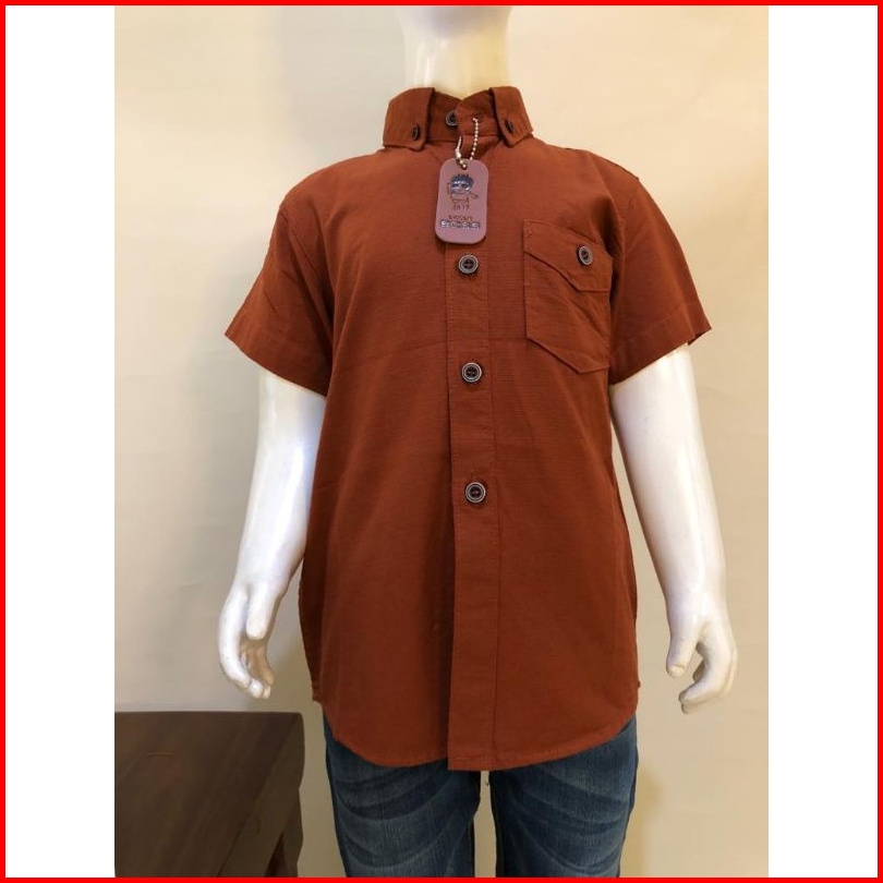 Kemeja Anak Lengan Pendek Warna Caramel Bahan Katun Premium Uniqlo Untuk Usia 1 - 16 Tahun