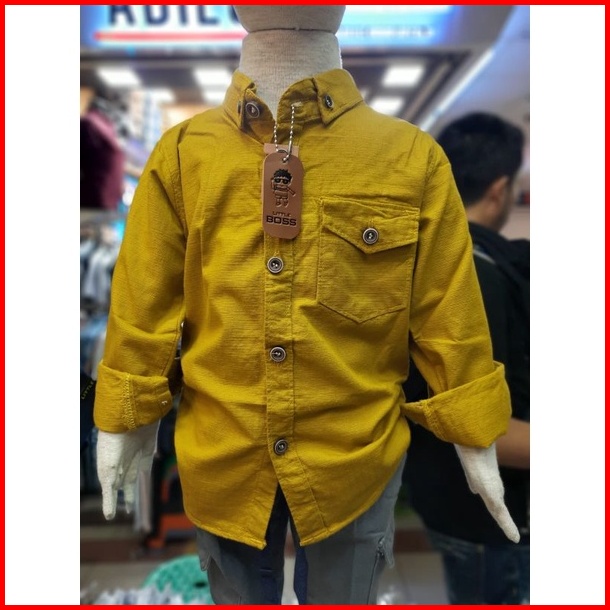 Kemeja Anak Laki-laki Lengan Panjang Warna Kuning Kunyit Tua Bahan Katun Uniqlo Premium