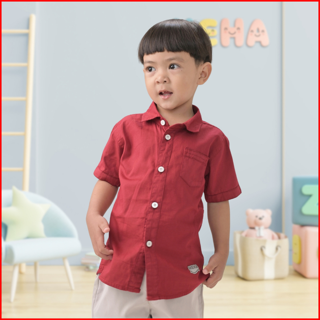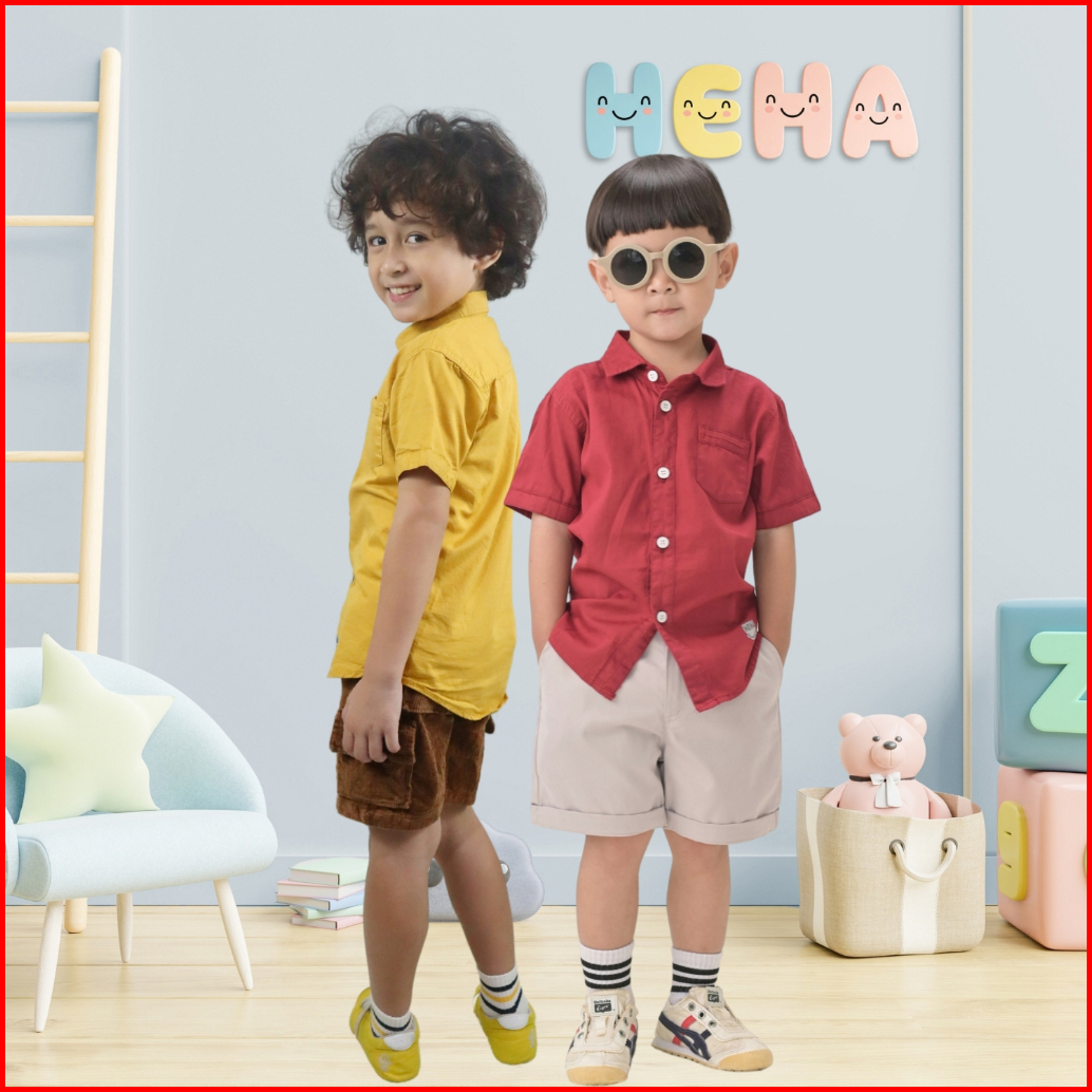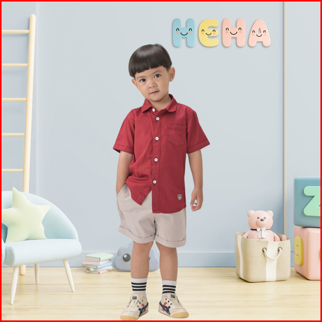 Heha - Nobi Kemeja Polos Anak Laki-laki Lengan Pendek Material Full Katun