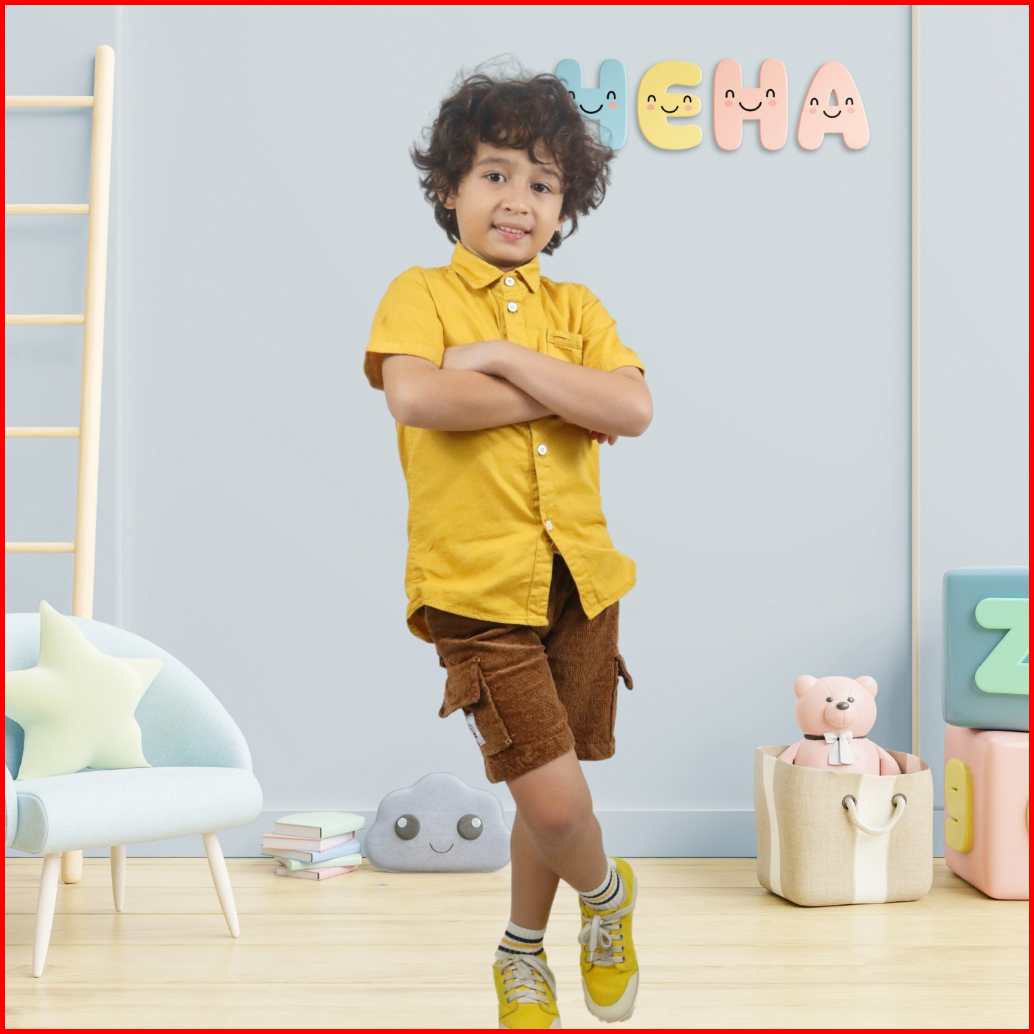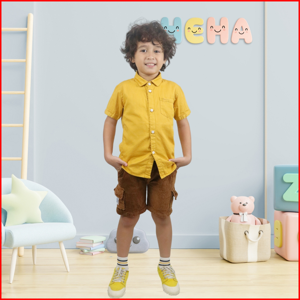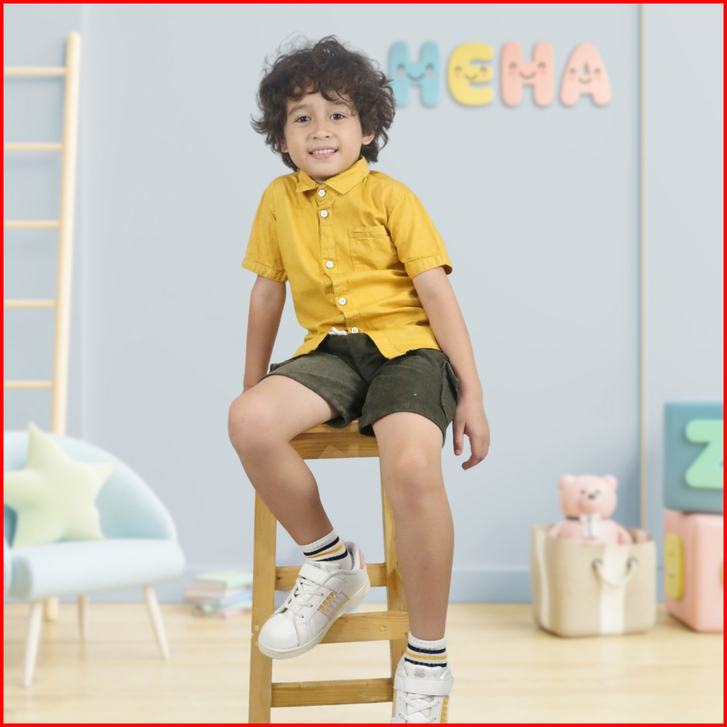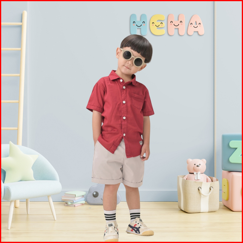 Heha - Nobi Kemeja Polos Anak Laki-laki Lengan Pendek Material Full Katun