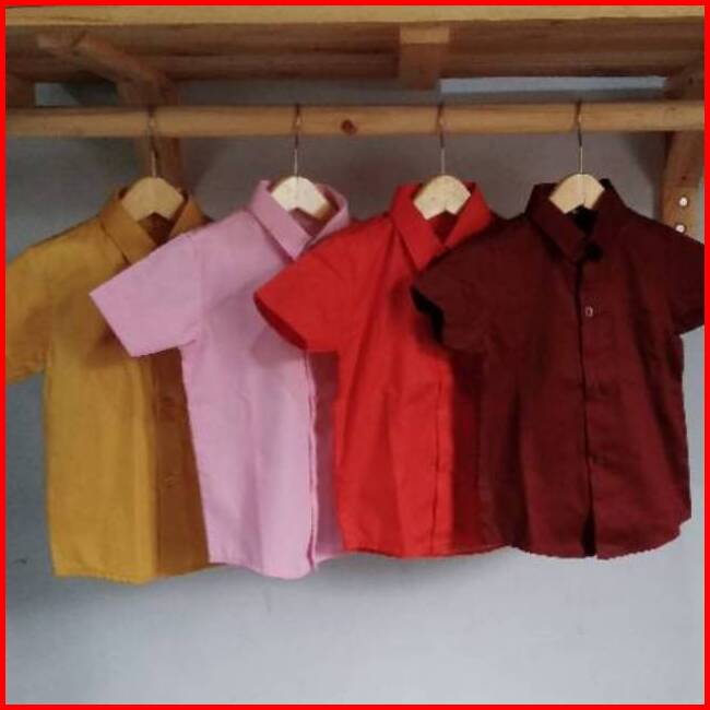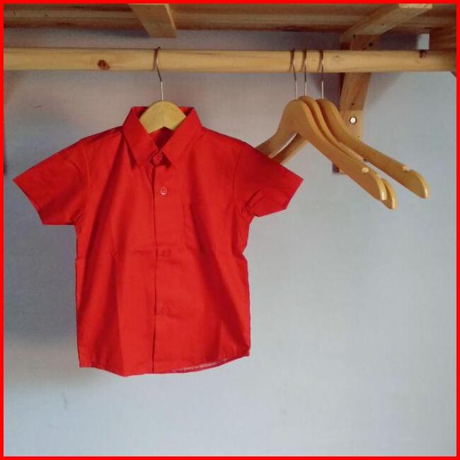 Gratis Dasi Kemeja Anak Lengan Pendek Merah Polos