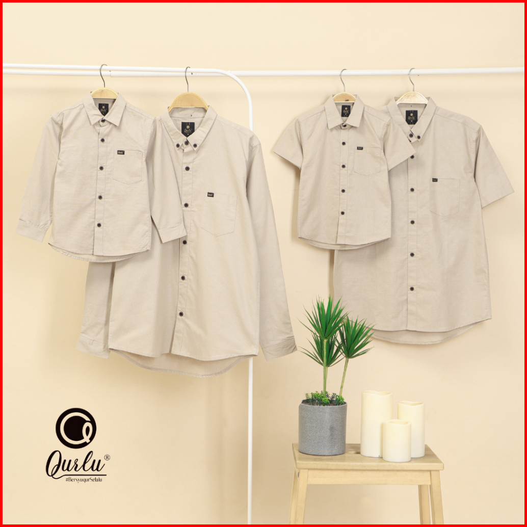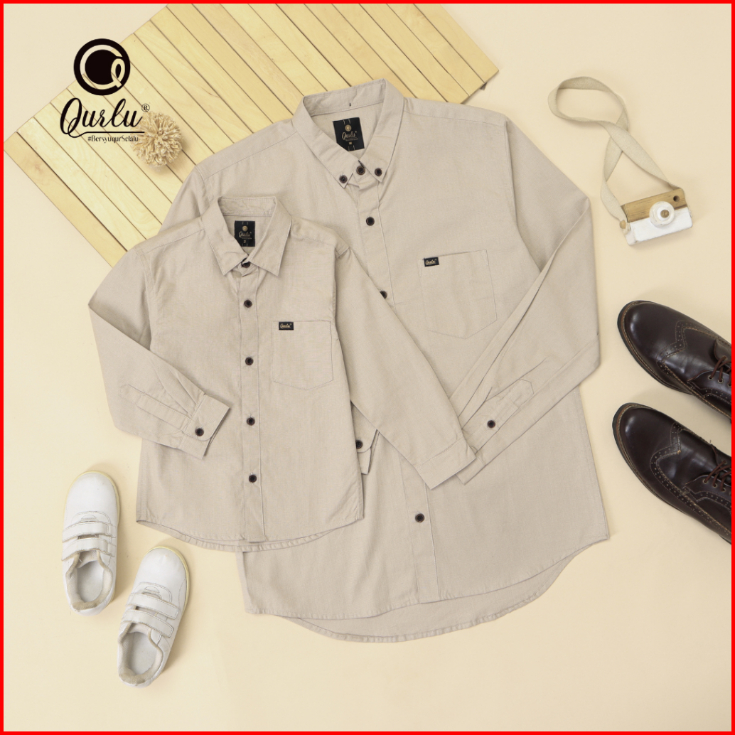 Qurlu - Kemeja Kerah Formal Dewasa Anak Warna Beige Bisa Couple Ayah Dan Anak
