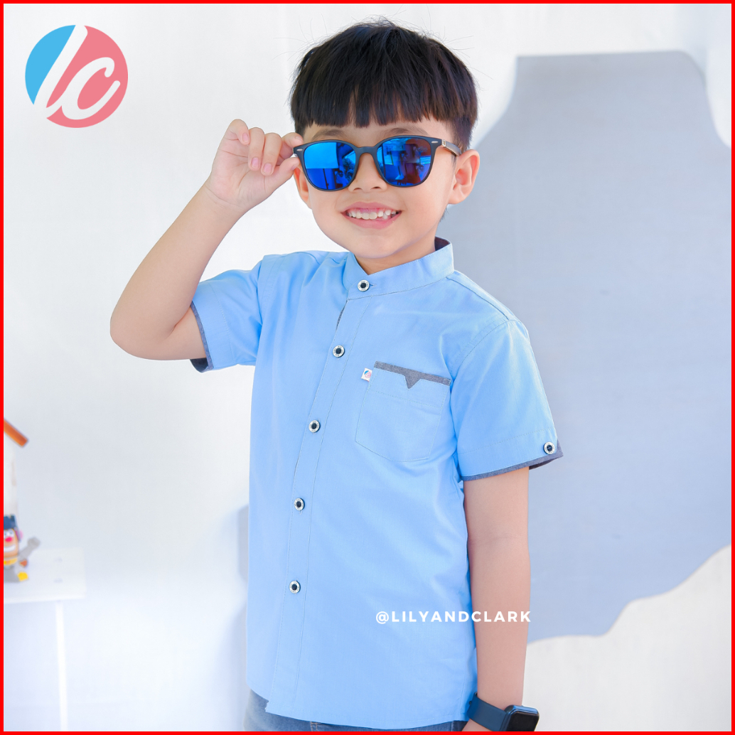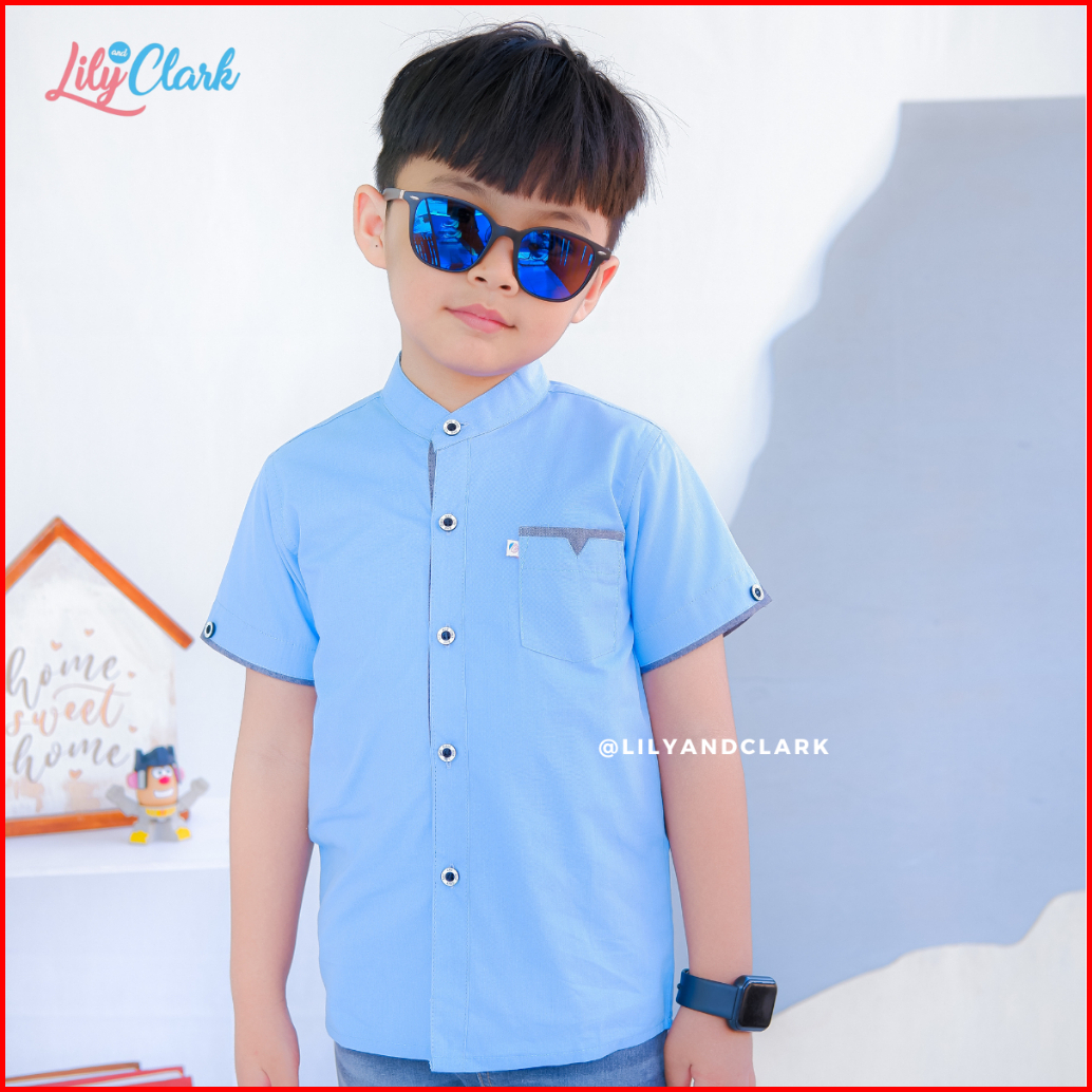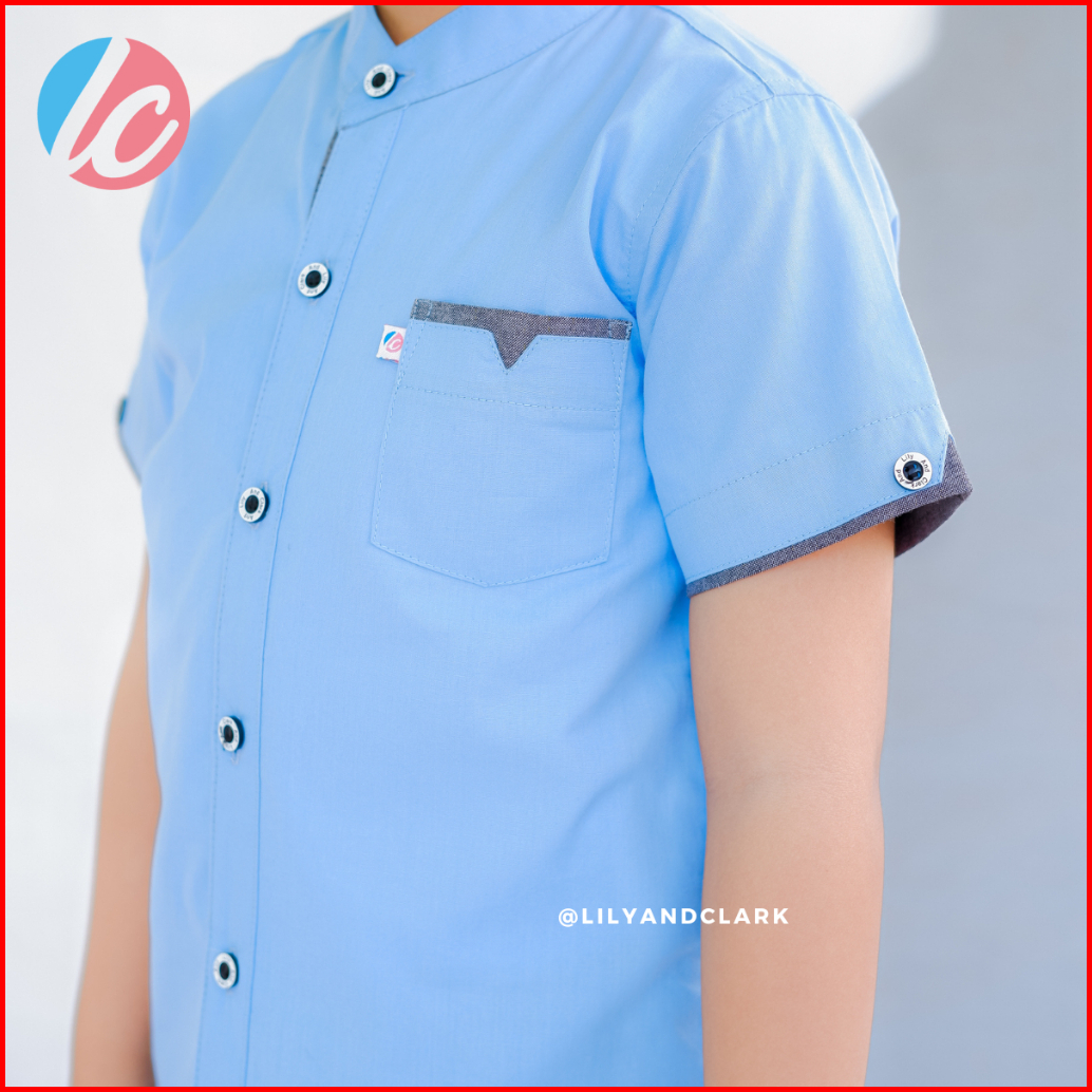 Lily And Clark Kemeja Pendek Anak Warna Steel Blue Kp12