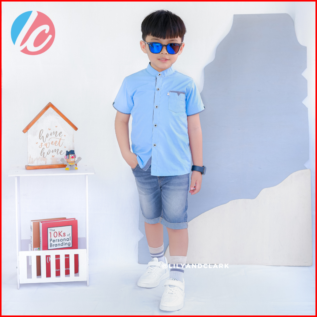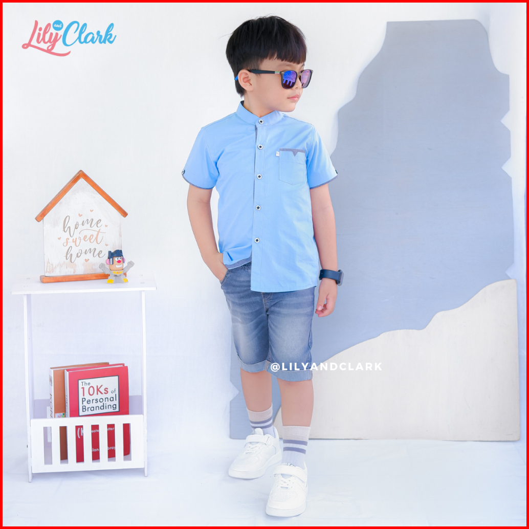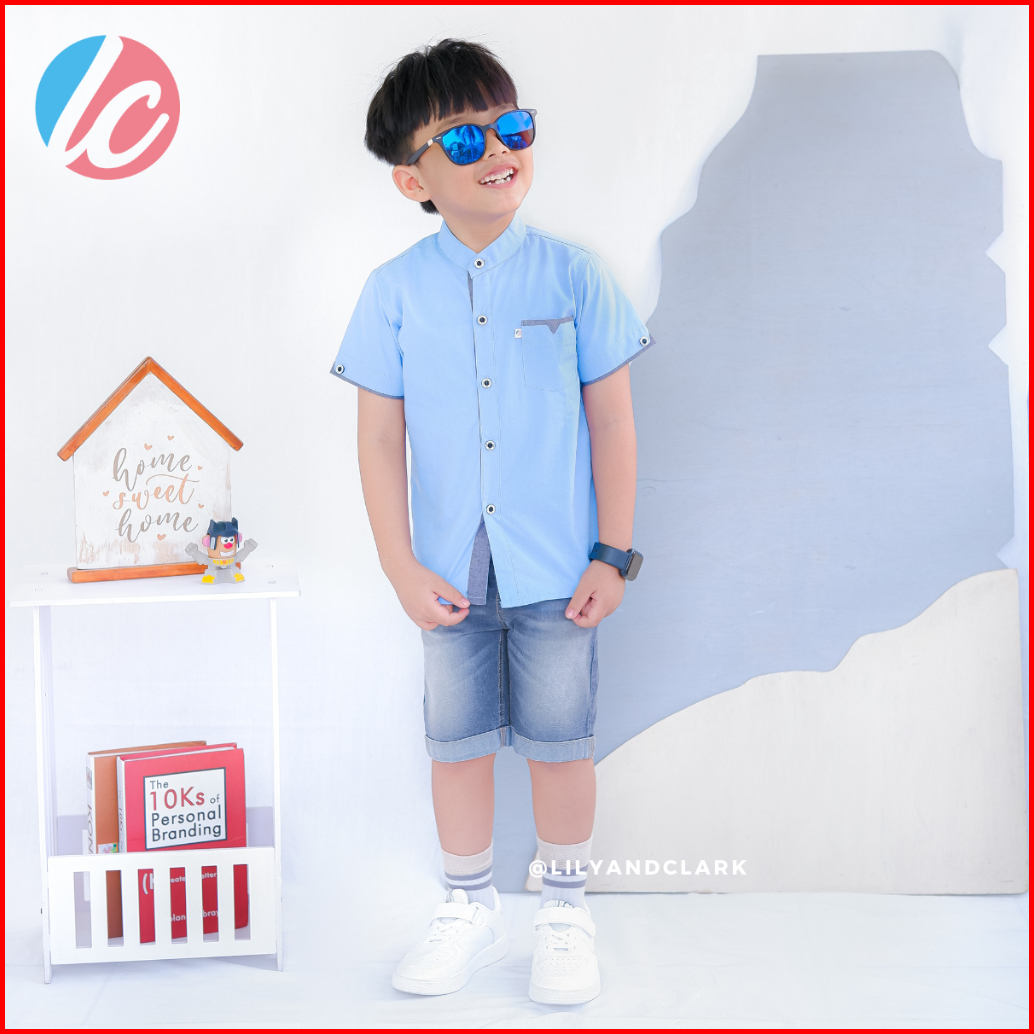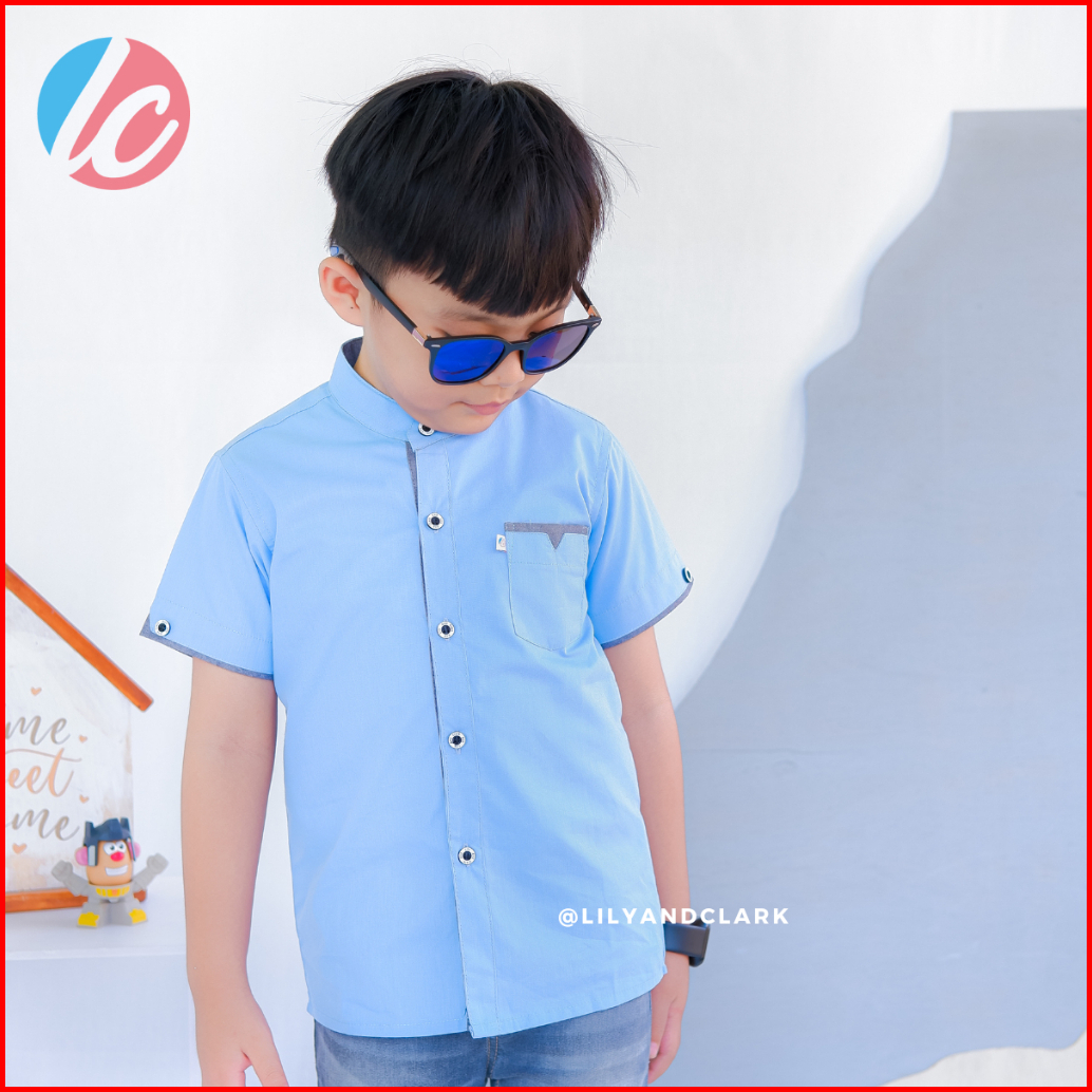Lily And Clark Kemeja Pendek Anak Warna Steel Blue Kp12