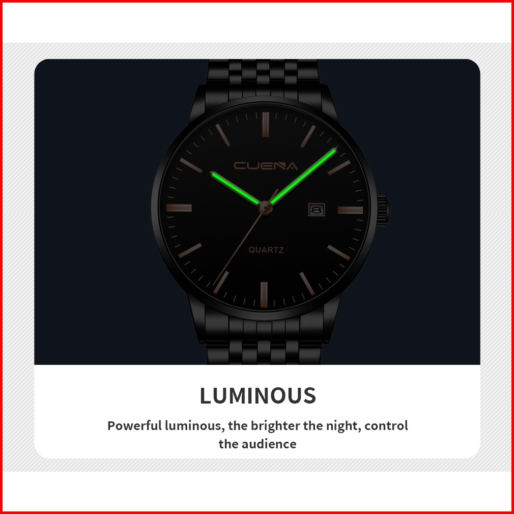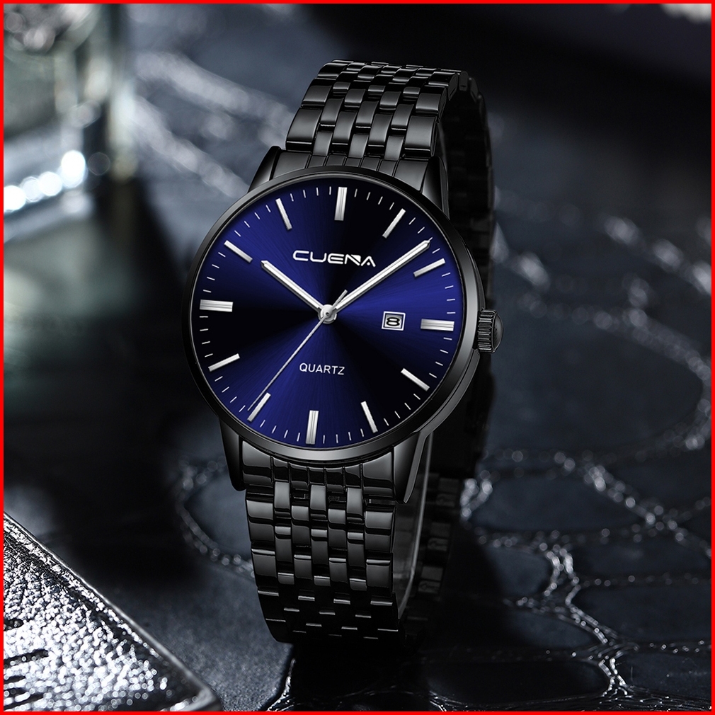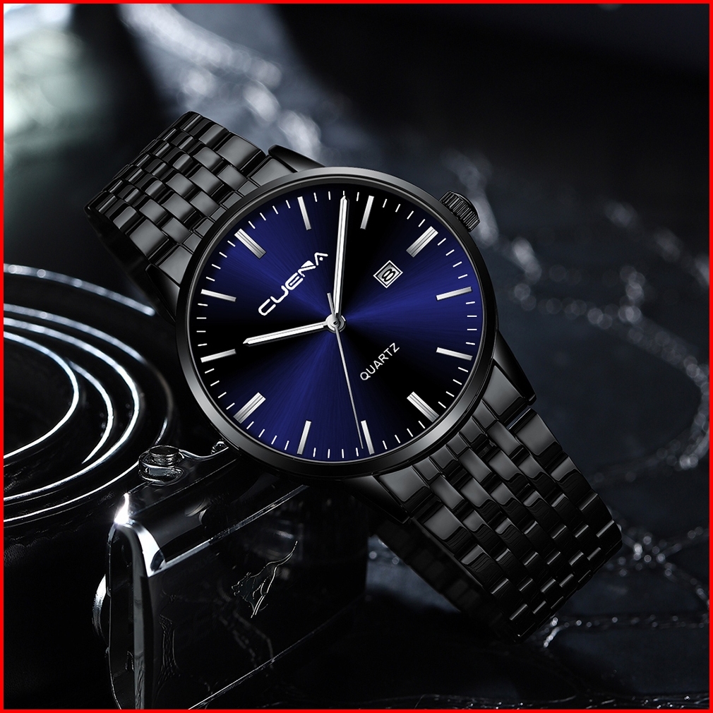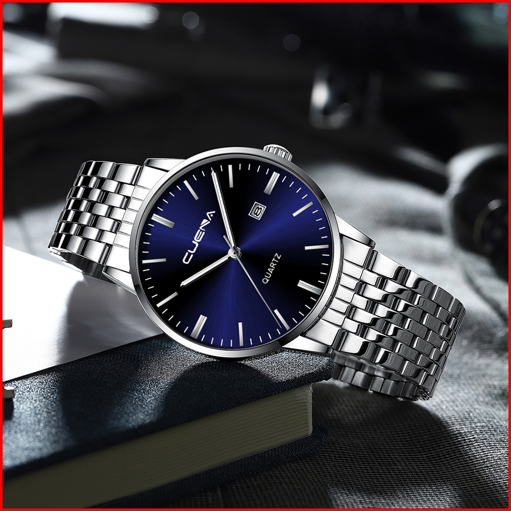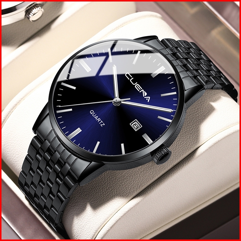 Cuena Jam Tangan Pria 6007 Kuarsa Olahraga Kasual Tali Baja Tahan Karat Jam Tangan Cowok