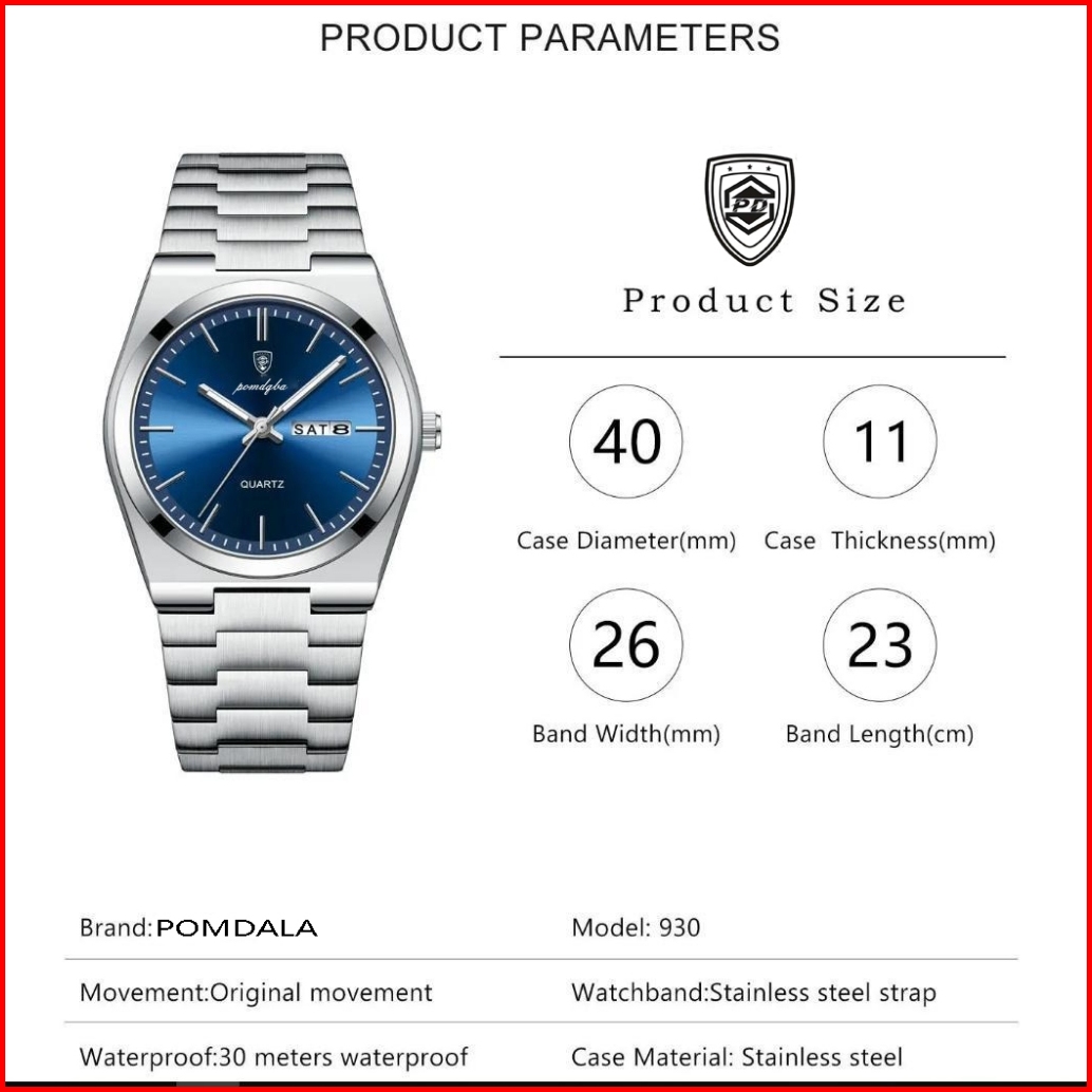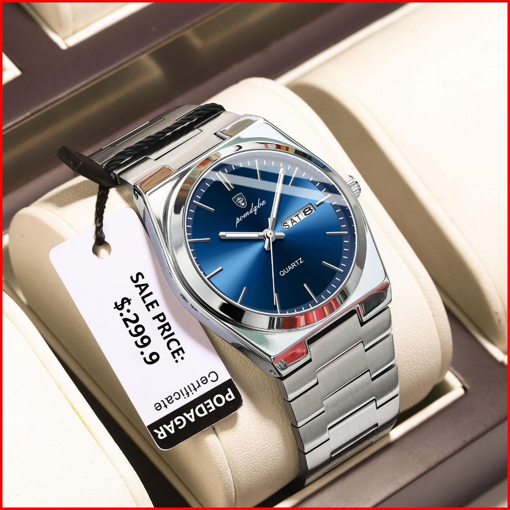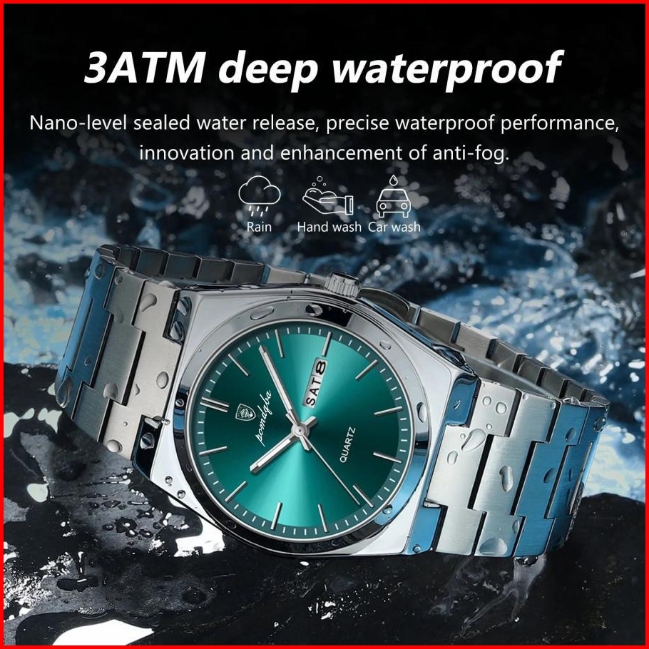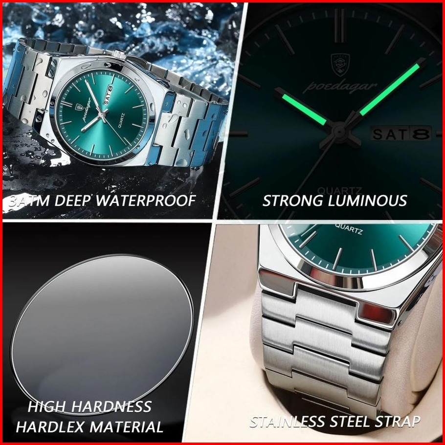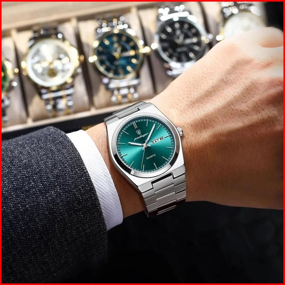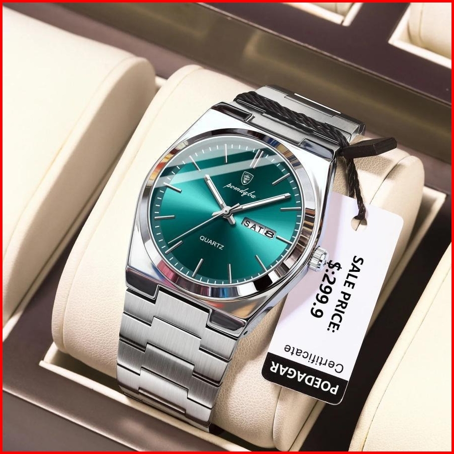 Jam Tangan Pria Original Kuarsa Mewah Sport Tahan Air Bercahaya Tanggal Minggu Stainless Steel