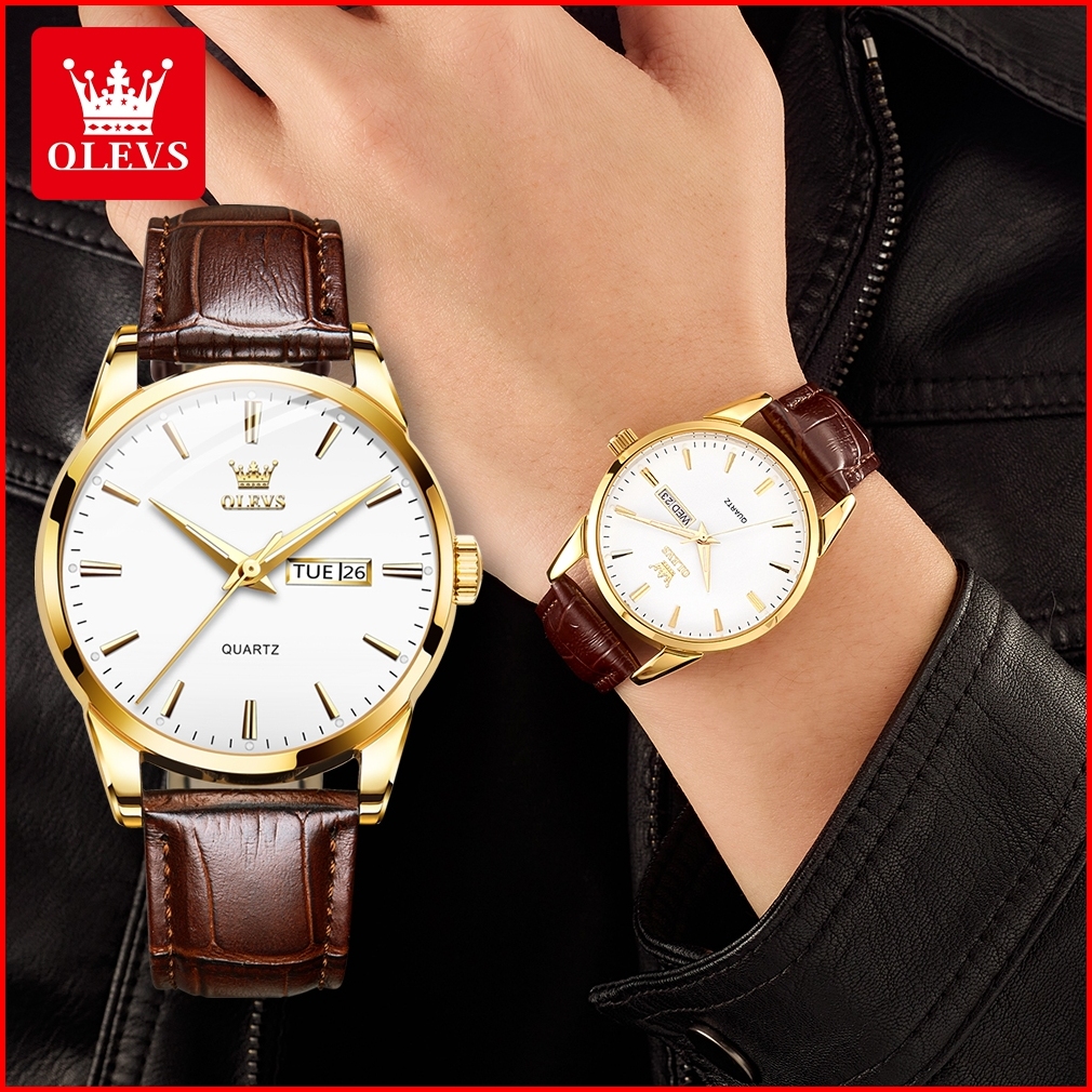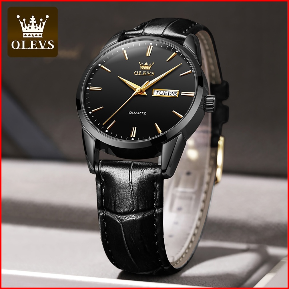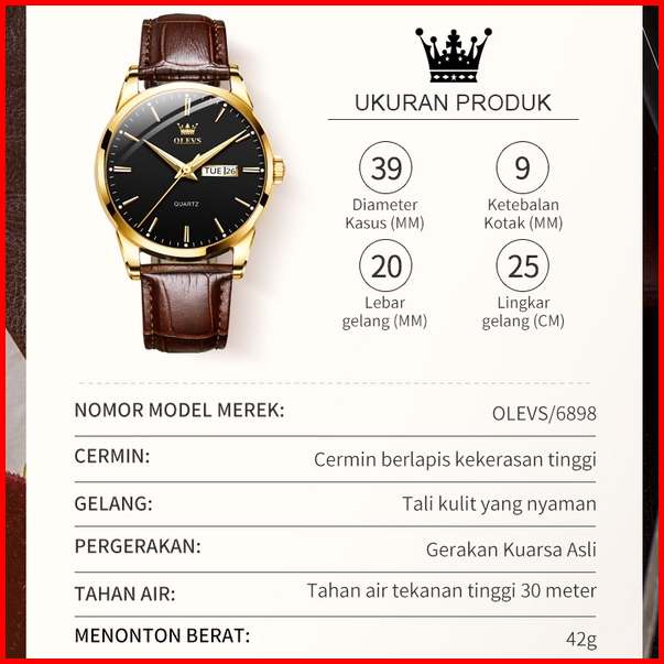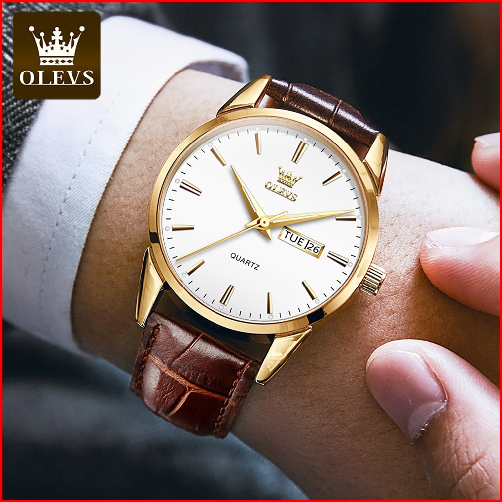 Olevs Jam Tangan Pria Terbaru 2025 Original Anti Air Tahan Kulit Luminous Analog Watch 6898