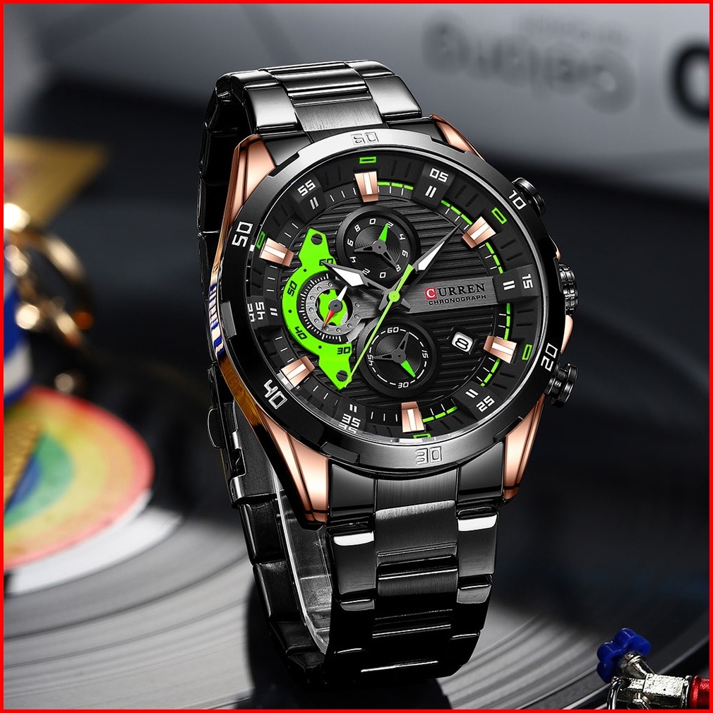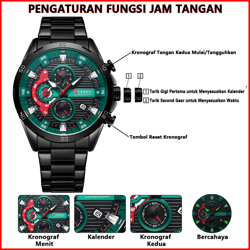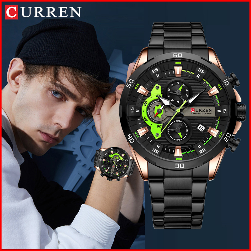 Curren Jam Tangan Pria Fashion Tahan Air Baja Tahan Karat Olahraga Kronograf Jam Tangan Bercahaya With Auto Date