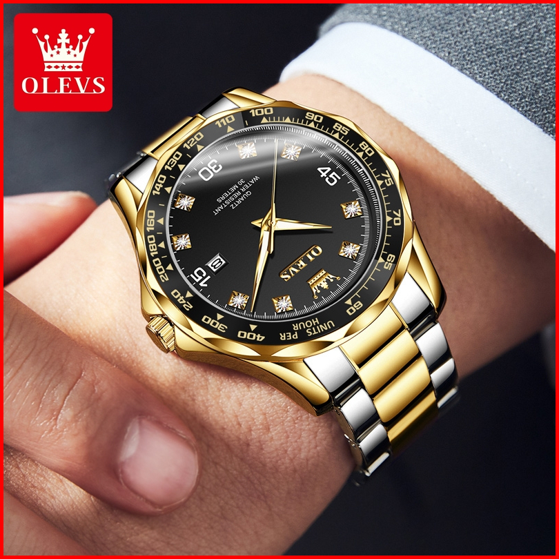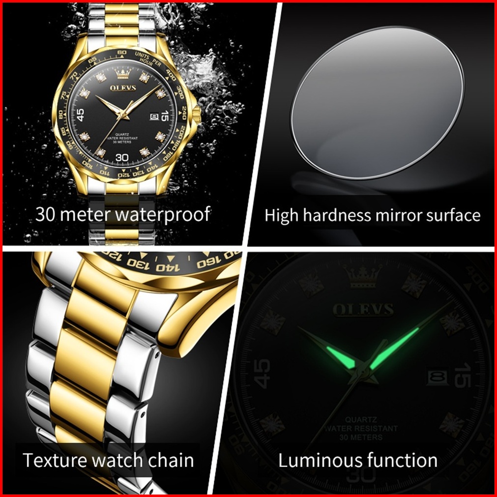 Olevs Jam Tangan Pria Anti Air Original 100 Arloji Pria Luxury Cowok Analog Kalender 2025 Terbaru Mewah Fashion Bisnis H