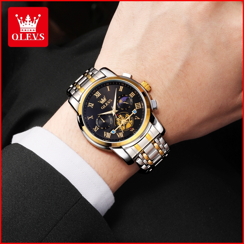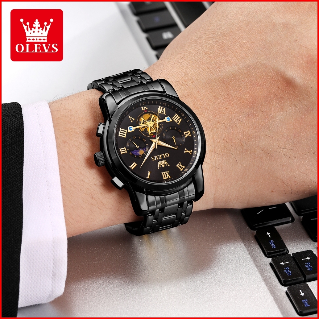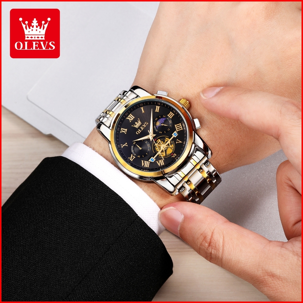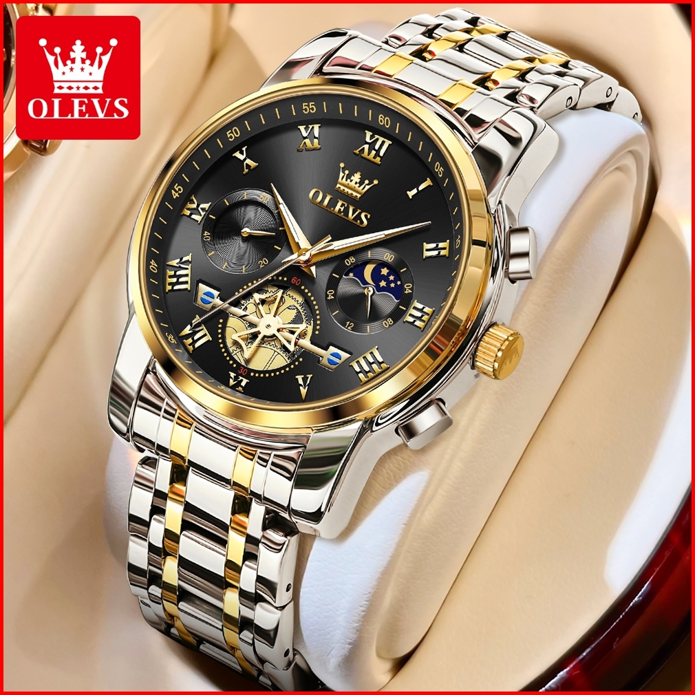 Olevs Jam Tangan Pria Anti Air Original Terbaru Mewah 2025 Multifungsi Chronograph Stainless Steel Watch Men 2859