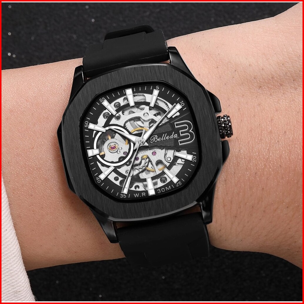 Promo Jam Tangan Pria Belleda 9633 Strap Rubber Anti Air 3atm Automatic Terbaru Unisex Watch