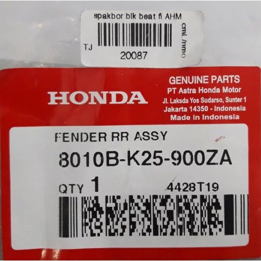 8010B-K25-900ZA Spakbor Belakang Beat Fi 2012 sd 2015 100 Original Honda Asli Ori HGP