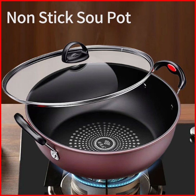Panci Sup Soup Pot 26 28 30 Wajan Penggorengan Anti Lengket Batu 22cm 24cm Tutup Kaca Murah