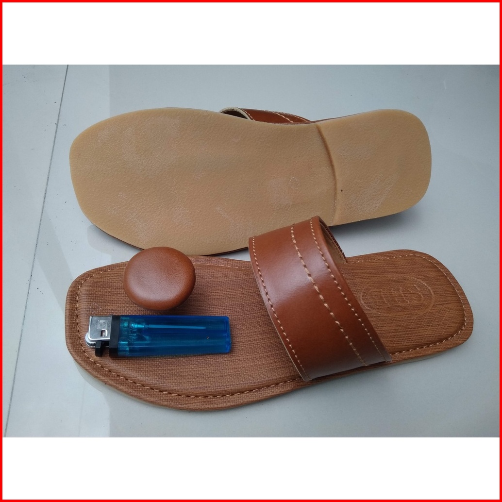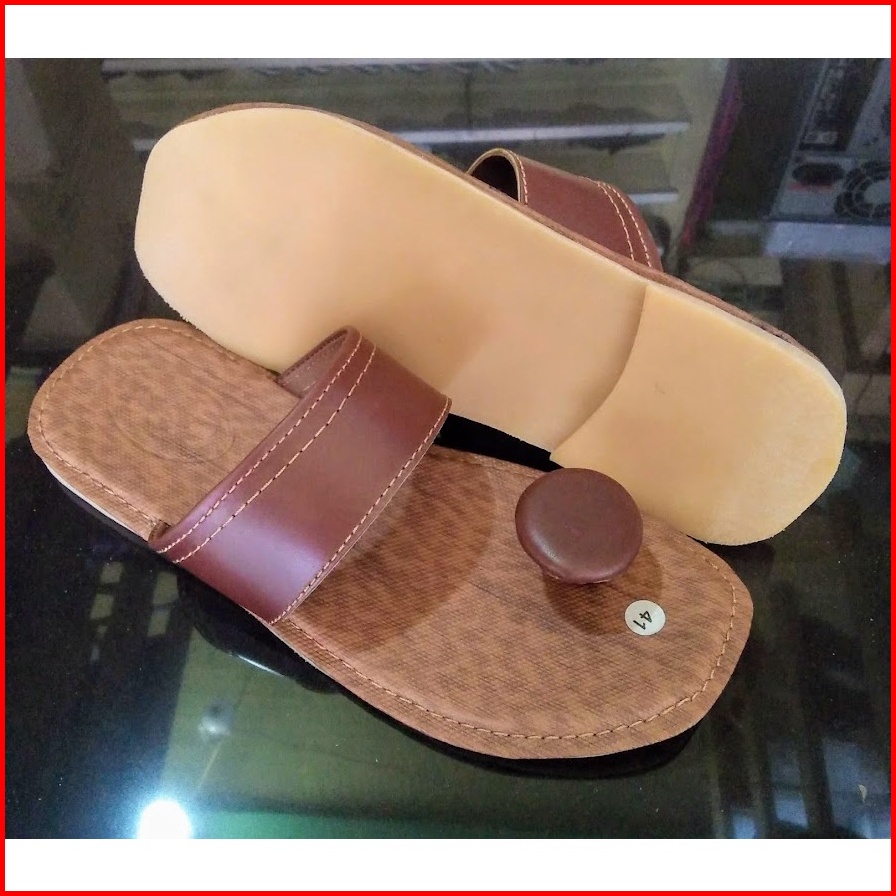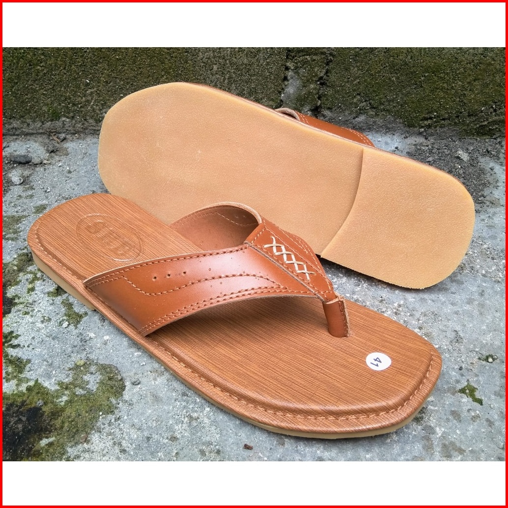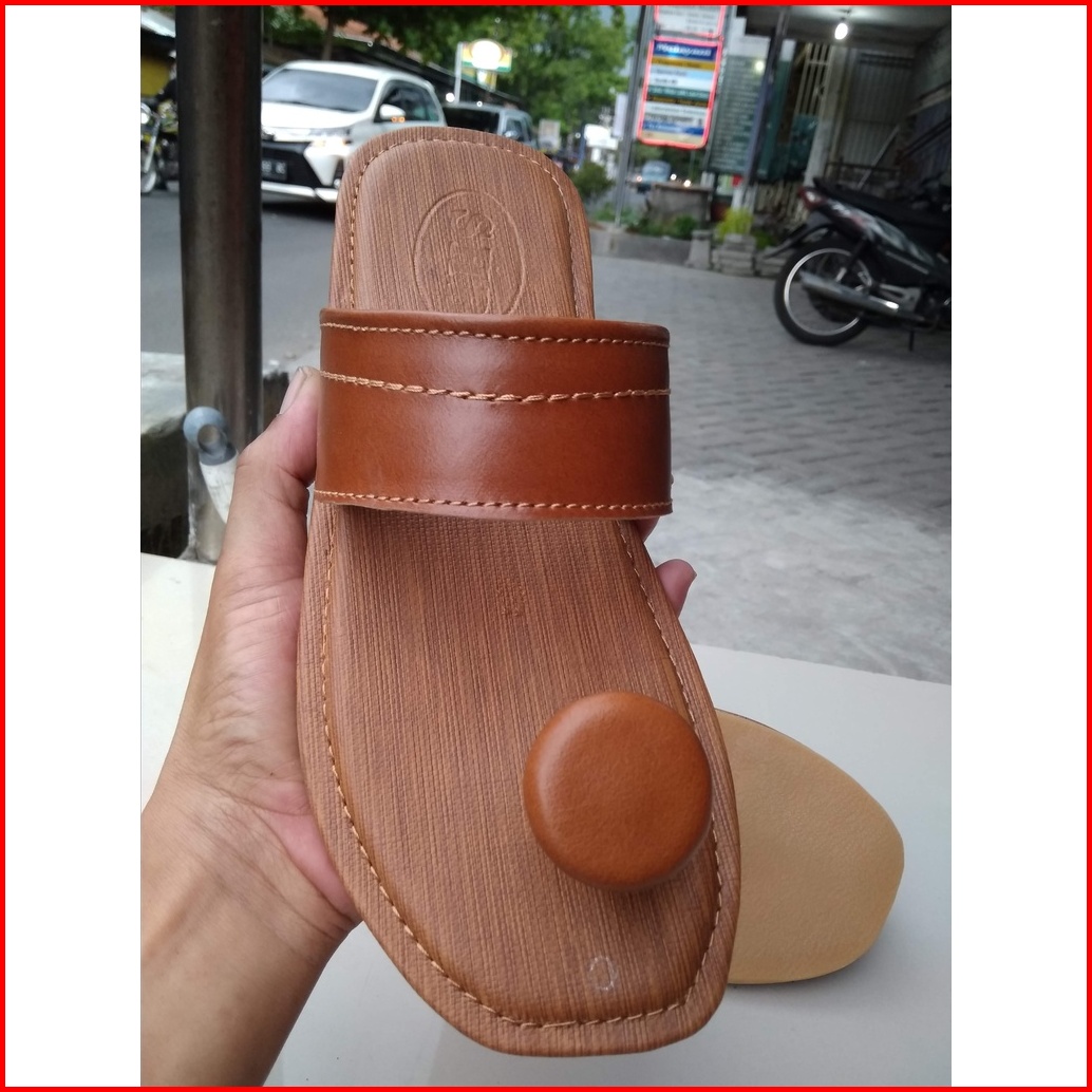 Terlaris... Sandal Jamur Pria Kulit Sapi Asli Alas Cci Chevron Import. Outsole Karet Mentah Pentil. Lentur Empuk Tidak L