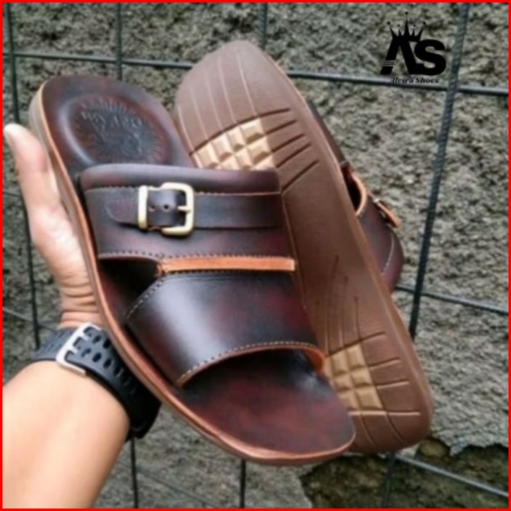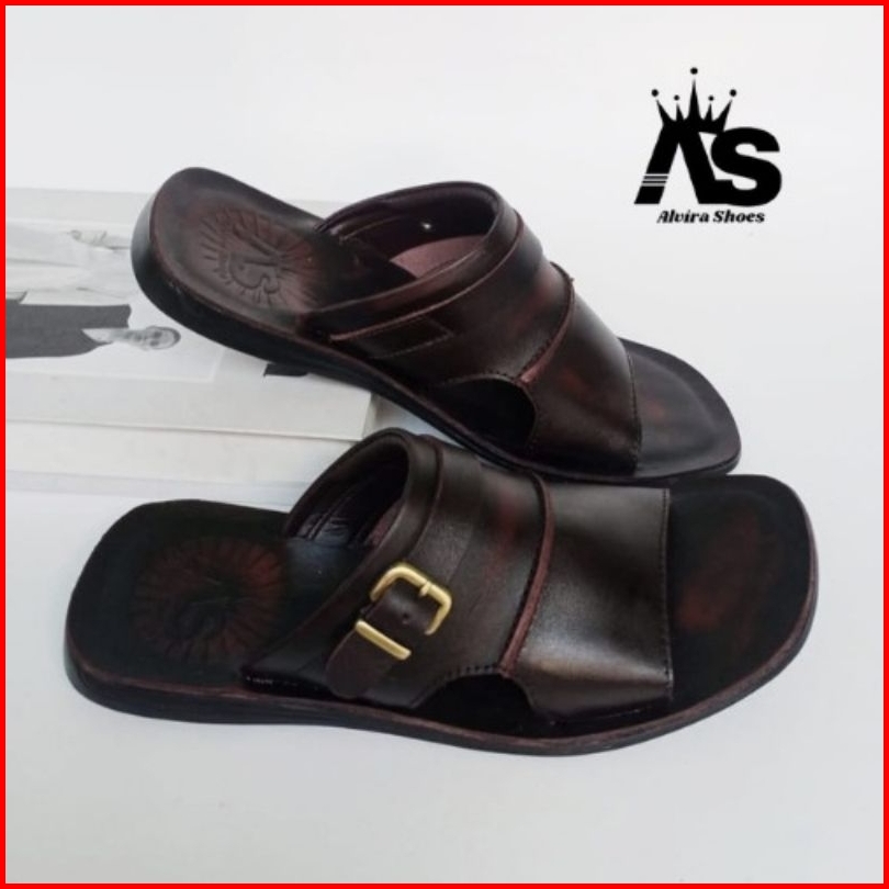 Sandal Pria Kulit Sapi Asli Berkualitas Ready Size 38 39 40 41 42 43 Tersedia Ukuran Hitam Coklat Dan Tan Outsole Karet