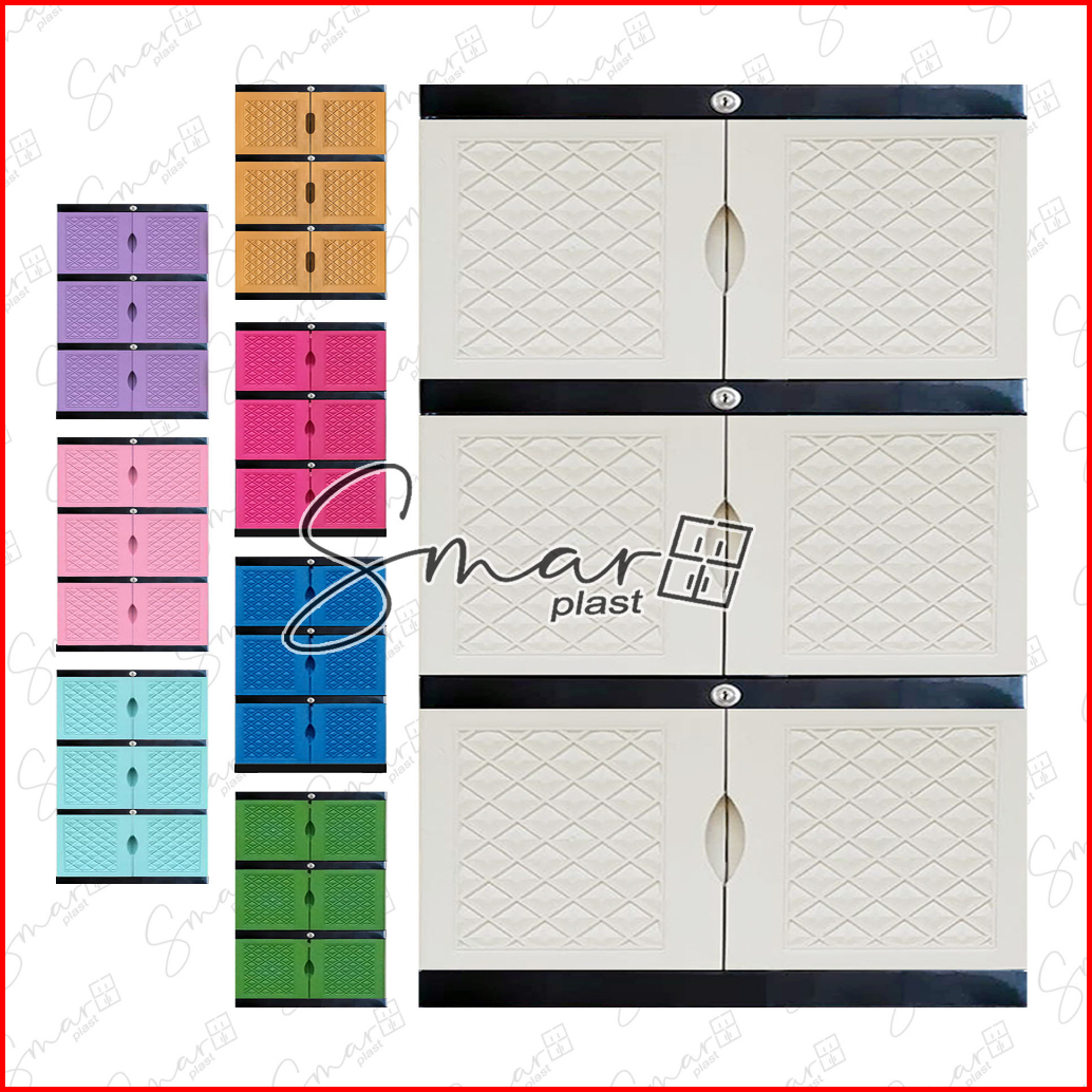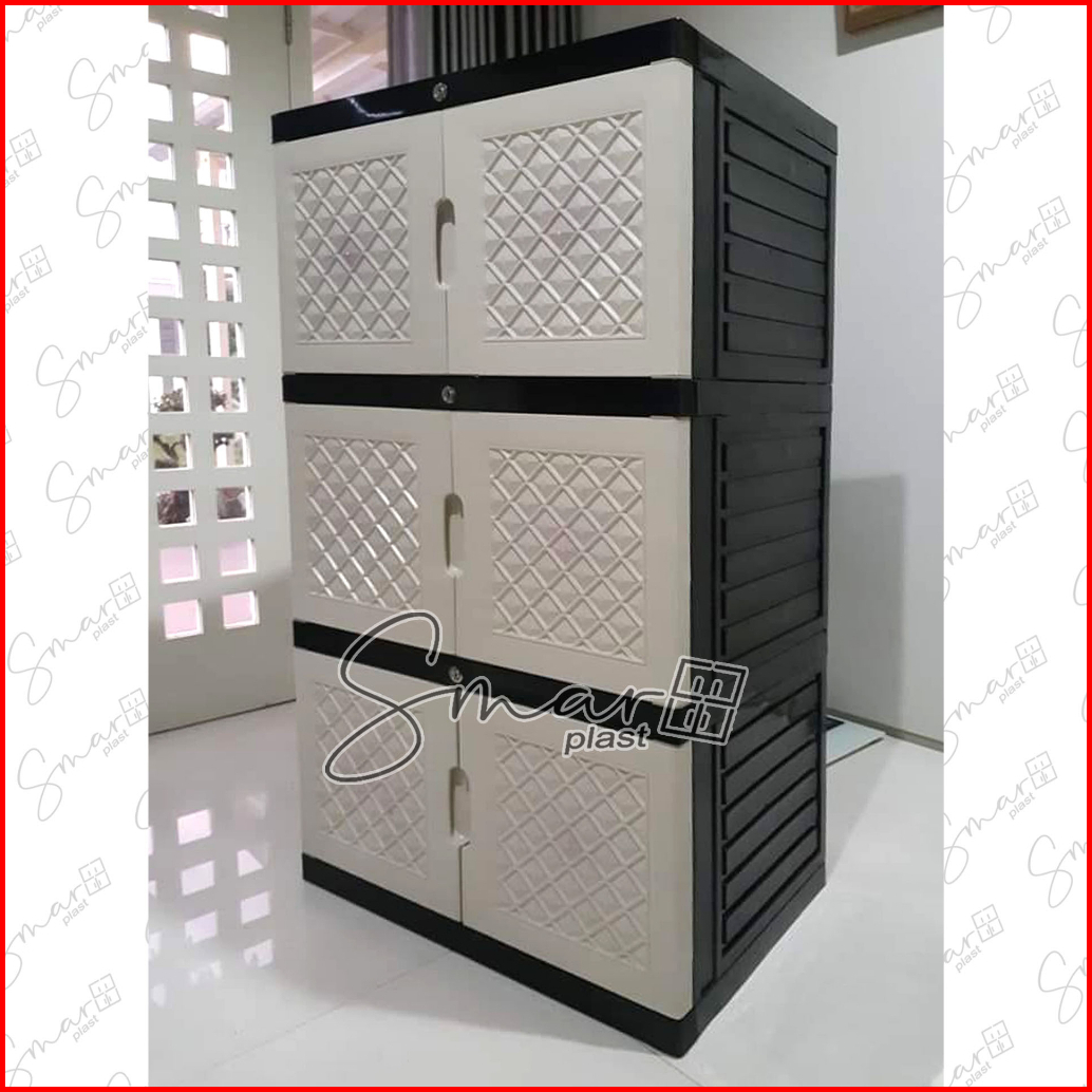 Lemari Plastik 3 Susun Tingkat Jumbo Rak Baju Pakaian Kabinet Full Kunci Excel Serbaguna Multifungsi Murah Kokoh Awet Aq