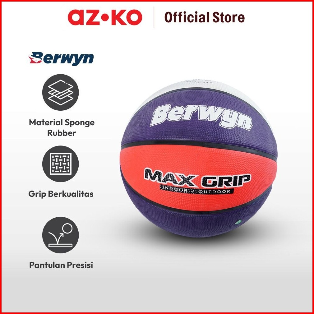 Azko Berwyn Ukuran 7 Bola Basket Sponge Rubber - Merah Biru Navy Bola Pantul Basketball Peralatan Olahraga Perlengkapan
