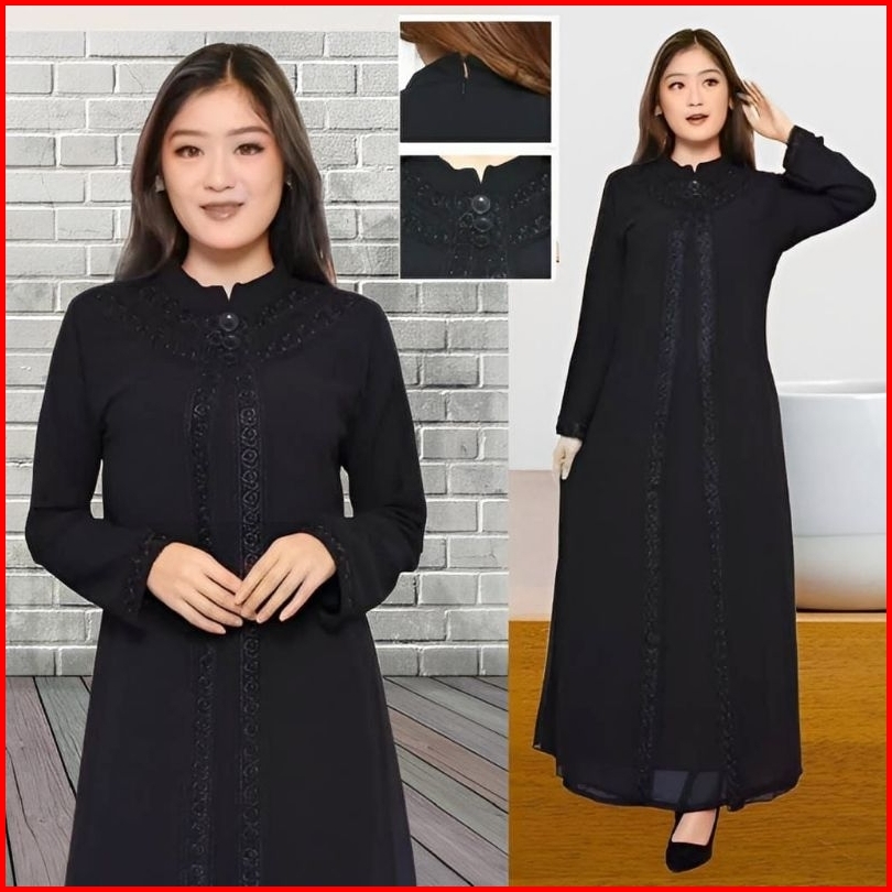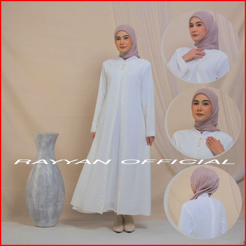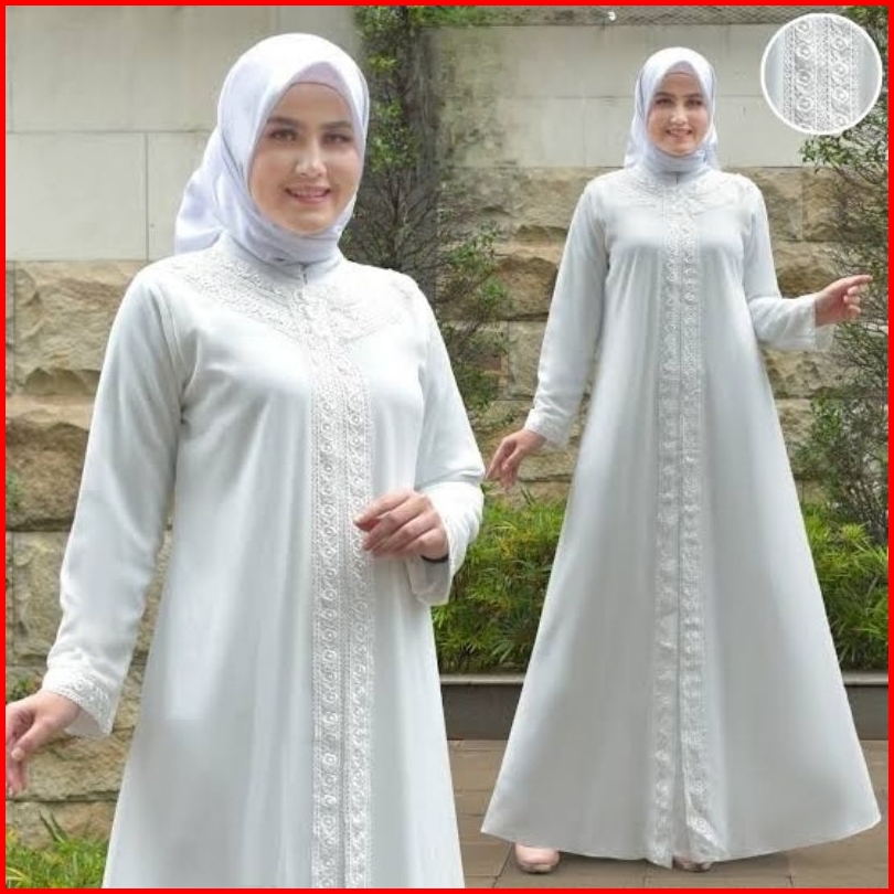 Baju Muslim Putih Wanita Busana Muslim Umroh Haji Baju Gamis Putih Tulang Hitam Gamis Wanita Lebaran