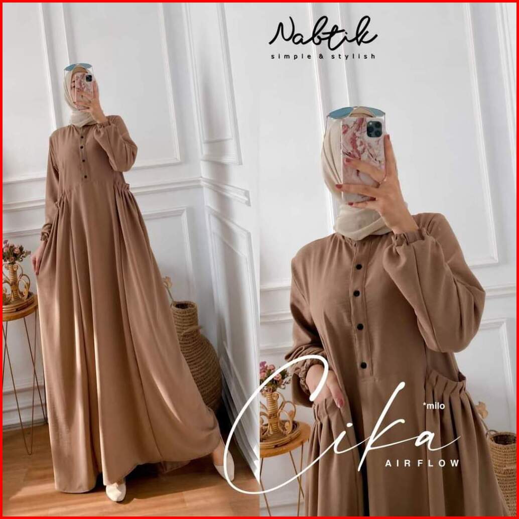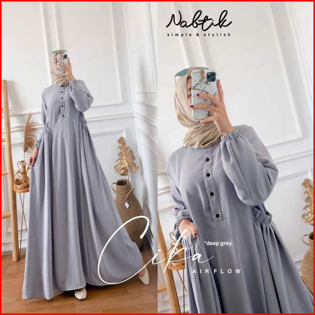 Gamis Cika Jumbo Ld 120 Gamis Syar I Simpel Elegan Bahan Crinkle Airflow Premium Busui Friendly