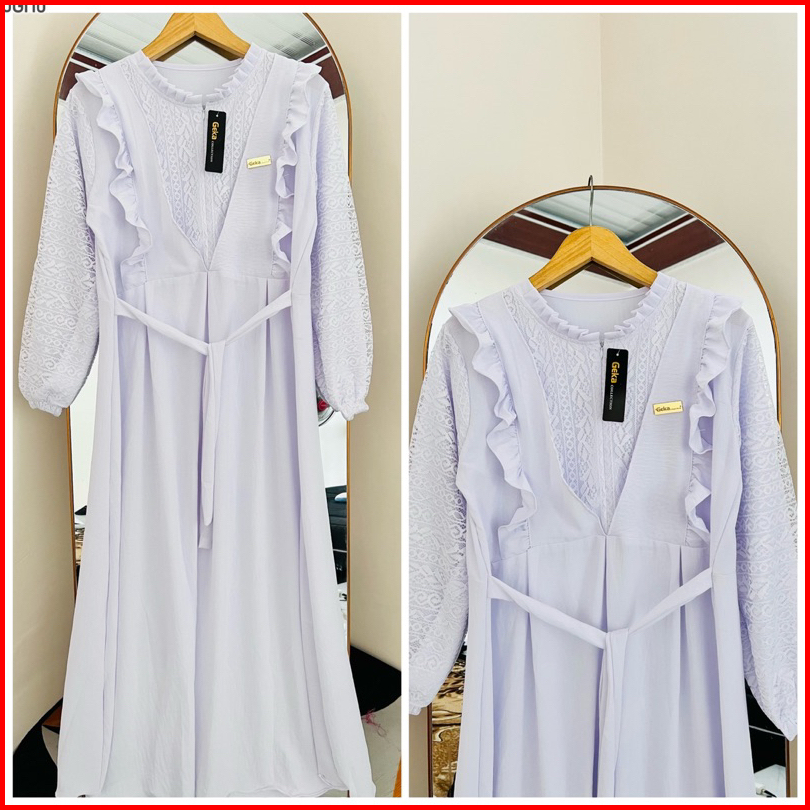 Gamis Putih Brokat Crinkle Bahan Lembut Ld 110