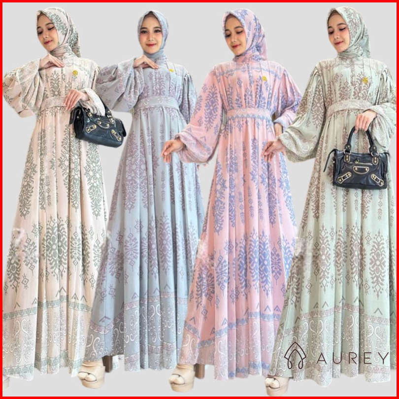 Aurey - Set Hijab Aghniya Gamis Dress Wanita Luxury Gamis Ceruty Wanita Busui Friendly Dress Wanita Gamis Wanita Premium