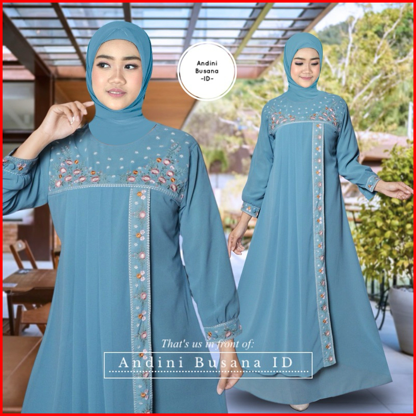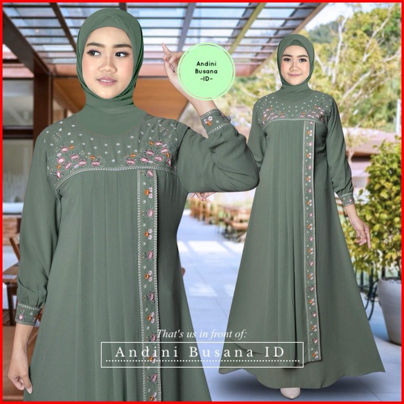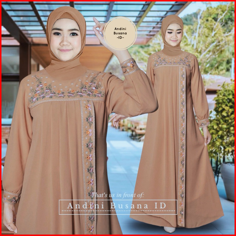 Andini Gamis Namira Bordir Ceruty Babydol Dewasa Model Terbaru