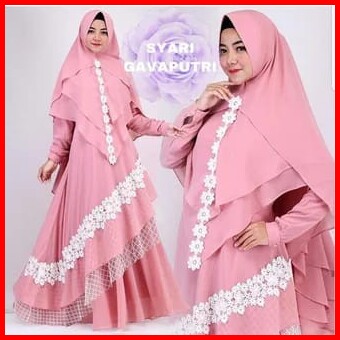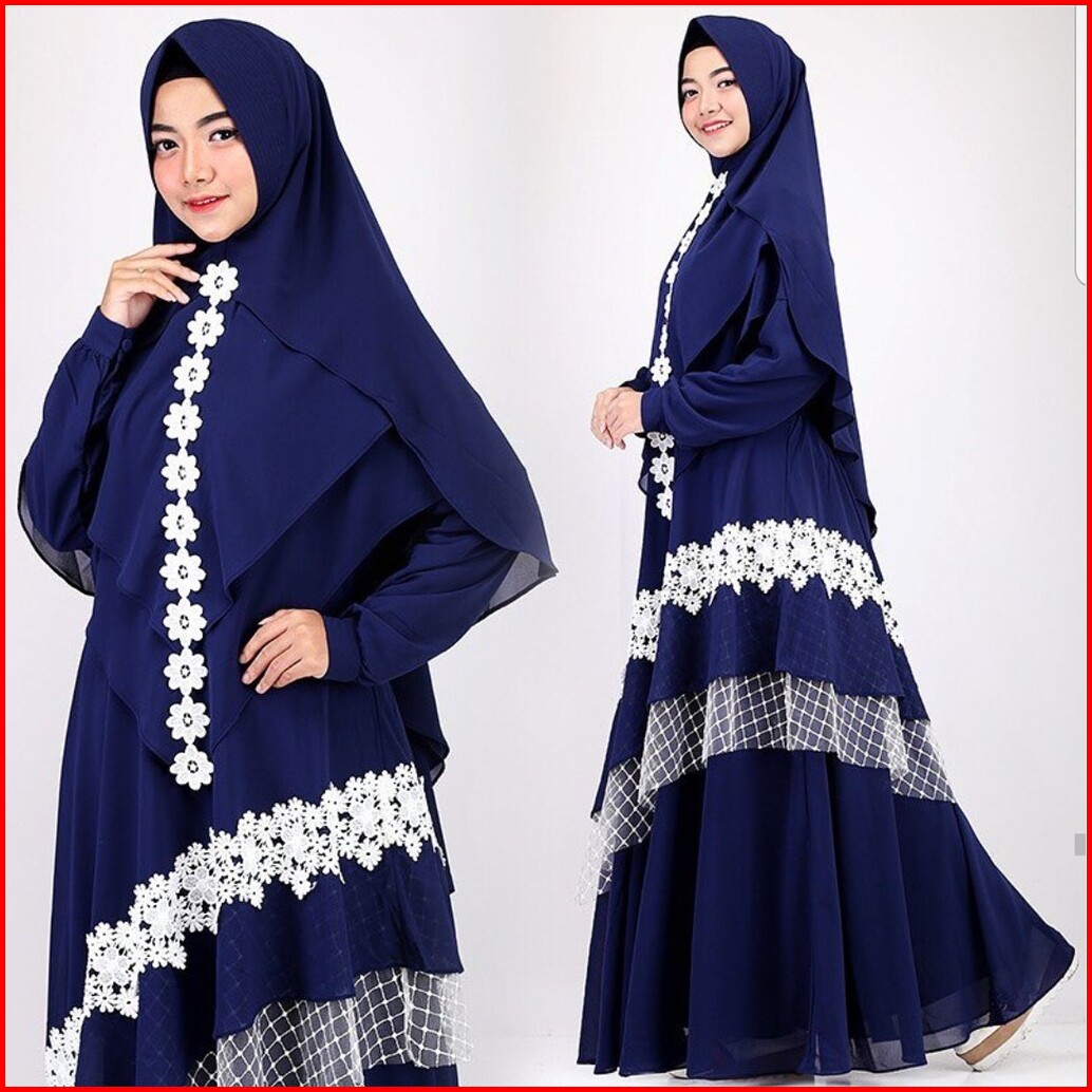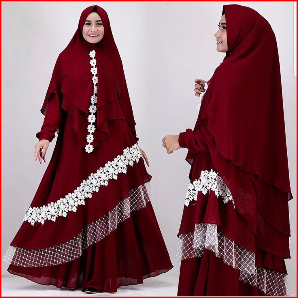 Gamis Set Hijab Terbaru Mewah Elegan Baju Lebaran Kekinian Pakaian Wanita