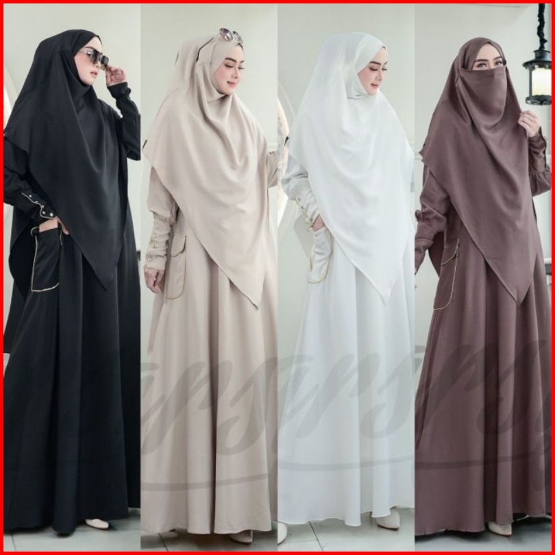 Armunza Syari By Arsy Hijab Syari Umroh Dress Umroh Seragam Haji Hitam Putih