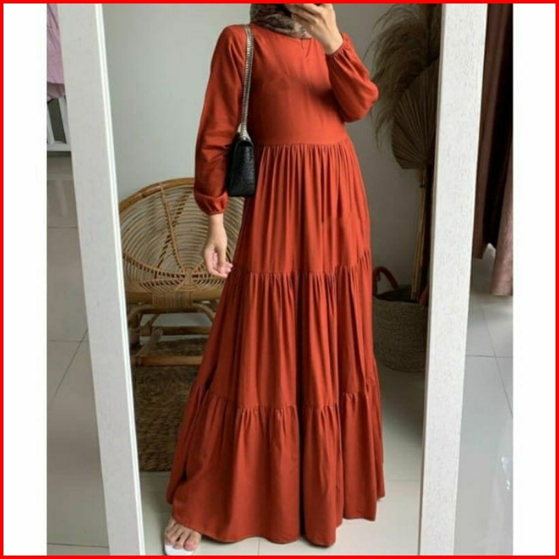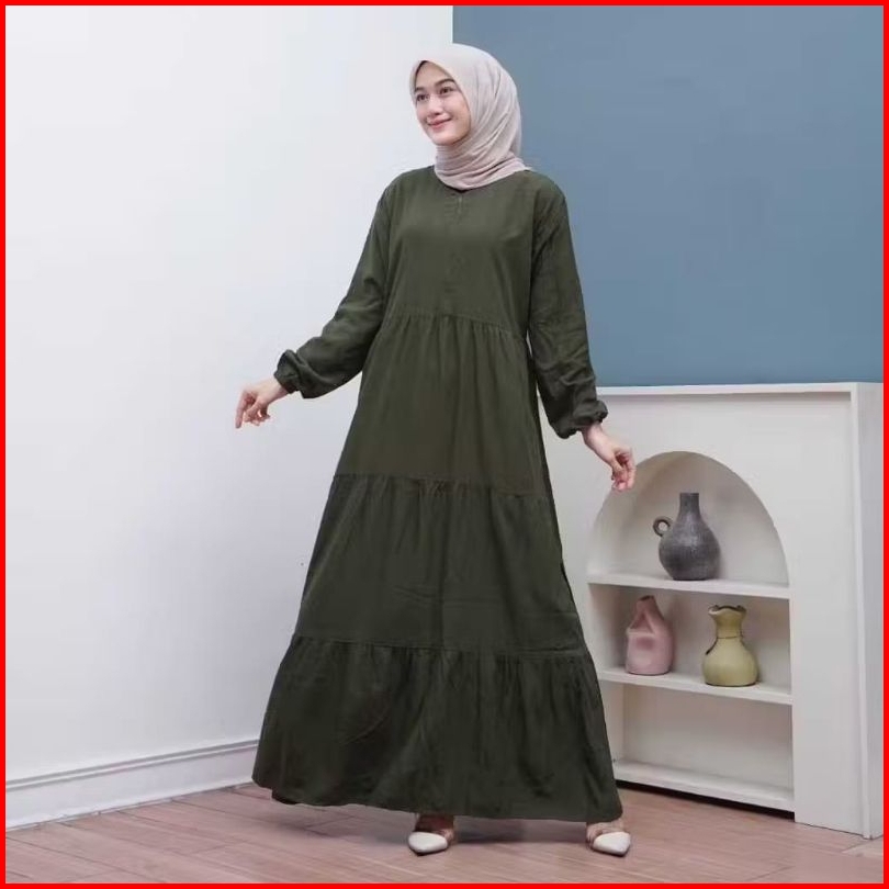 Hanum Dress Rayon Premium Gamis Rayon Susun Rempel Dress Rayon Polos