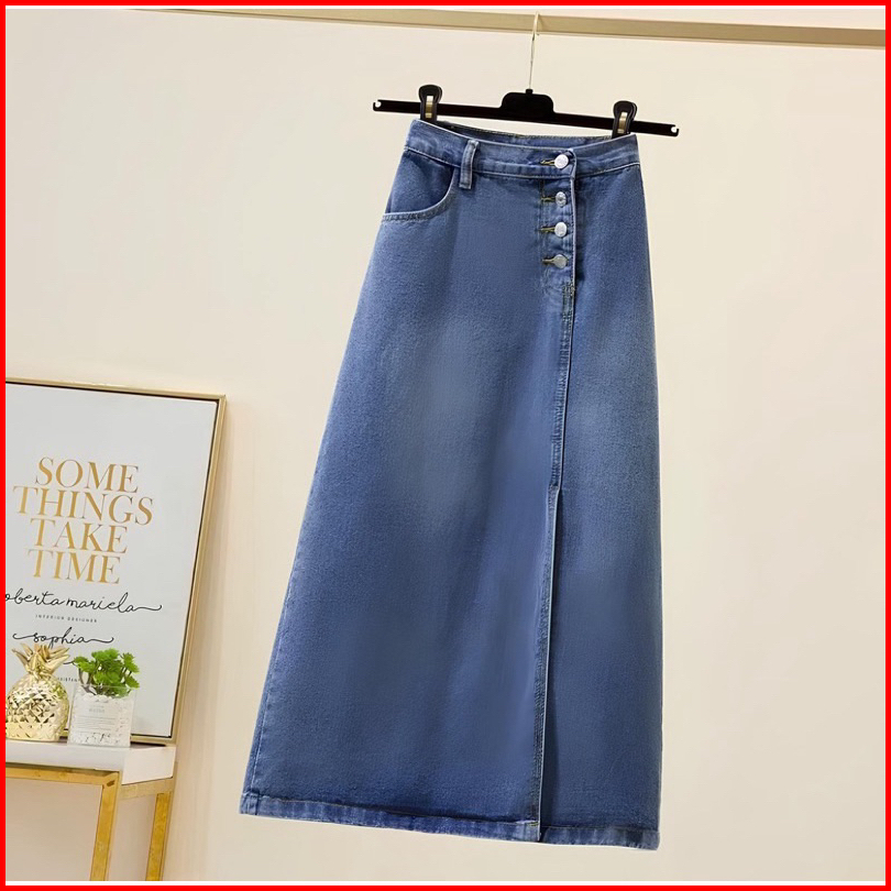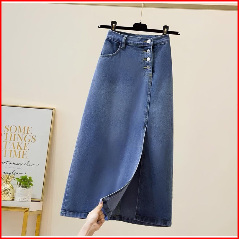 Rok Jeans Belah Samping - Highwaist Skirt - Rok Panjang Wanita