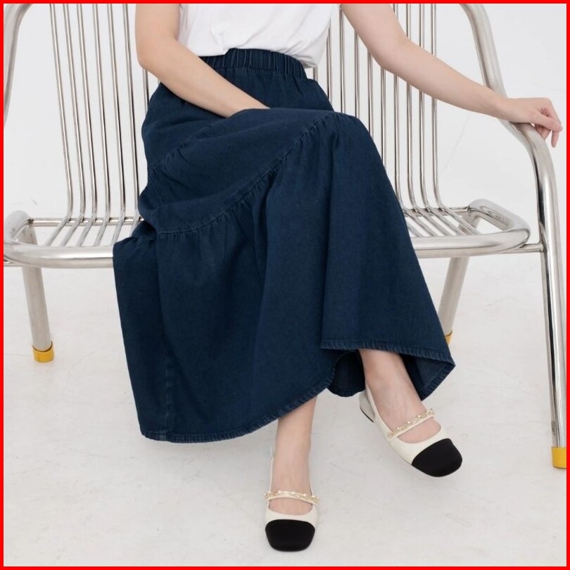 Sugi Label - Aruna Layered Skirt Rok Jeans Lebar Lembut