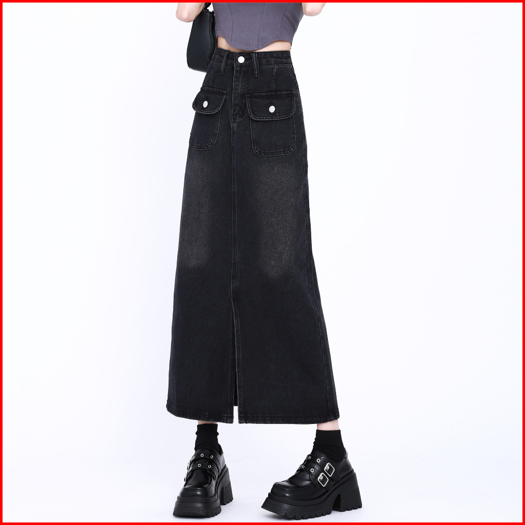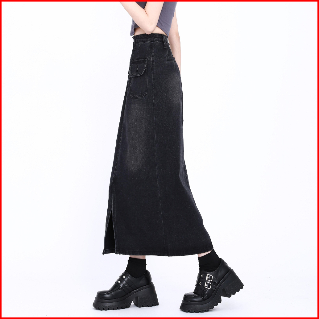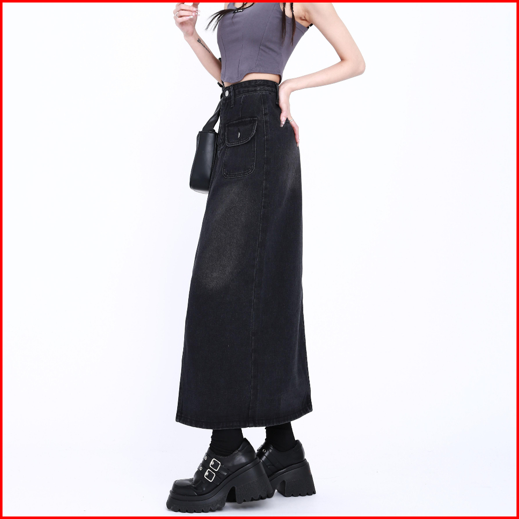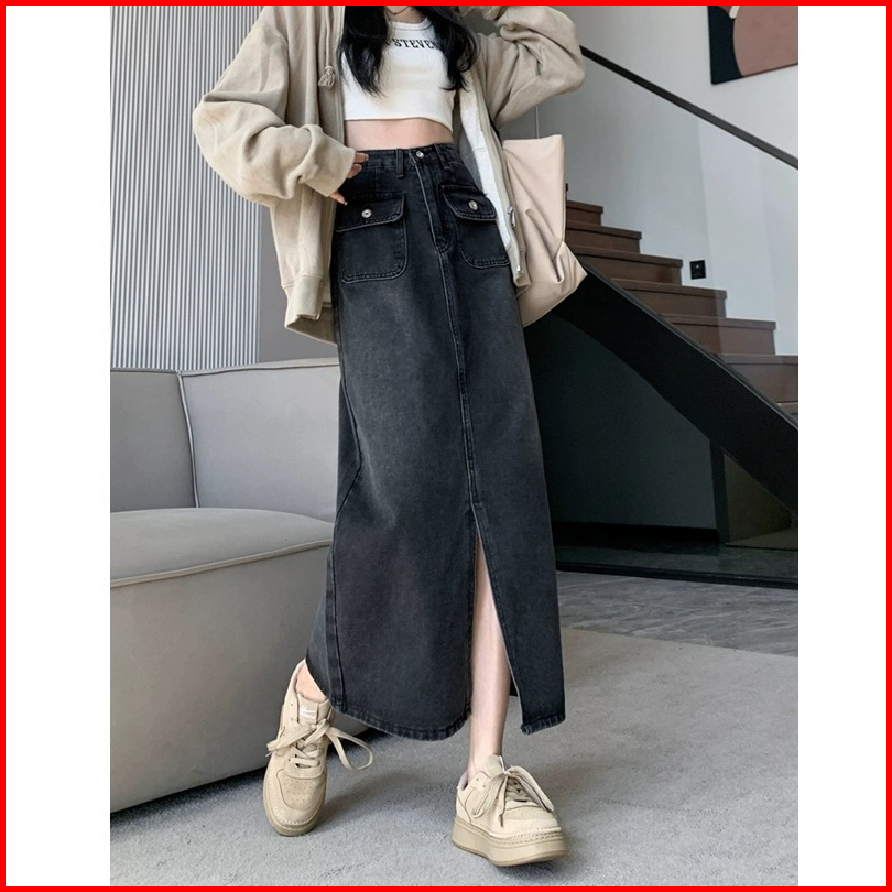 Xiaozhainv Korean Style Denim Rok Panjang Wanita Skirts Setengah High Waist 0797