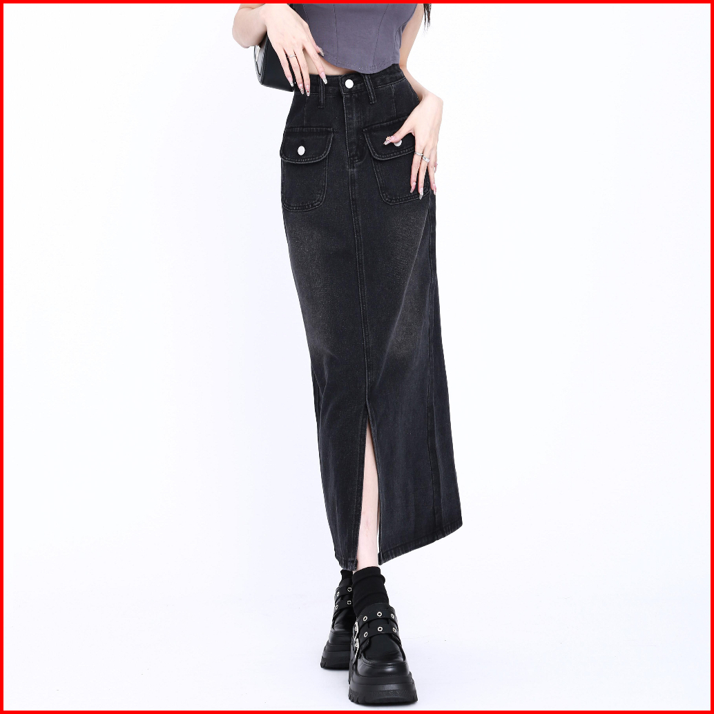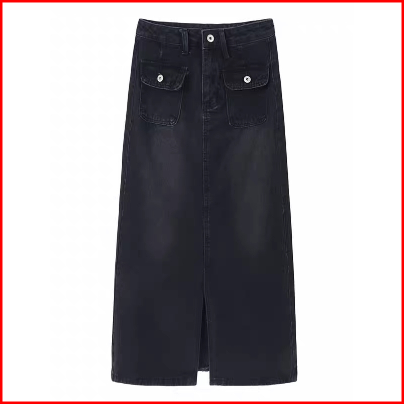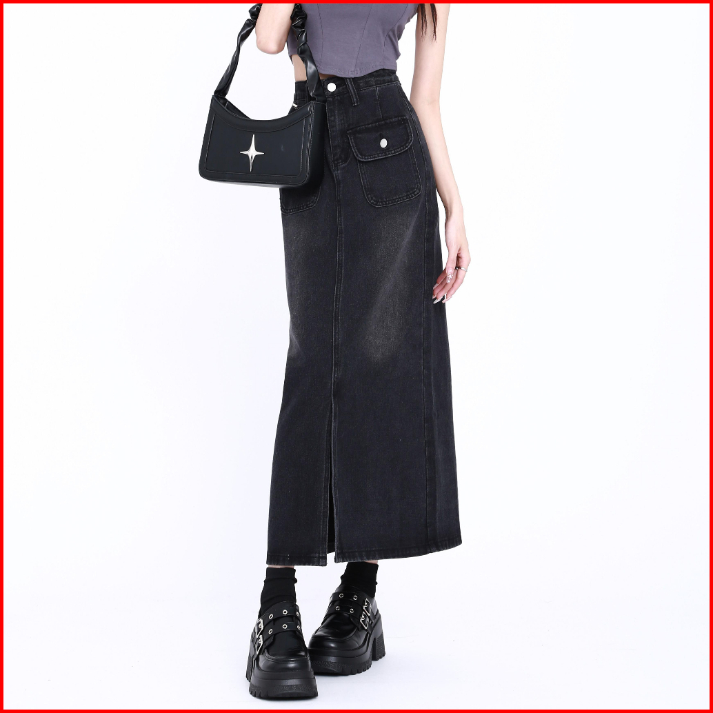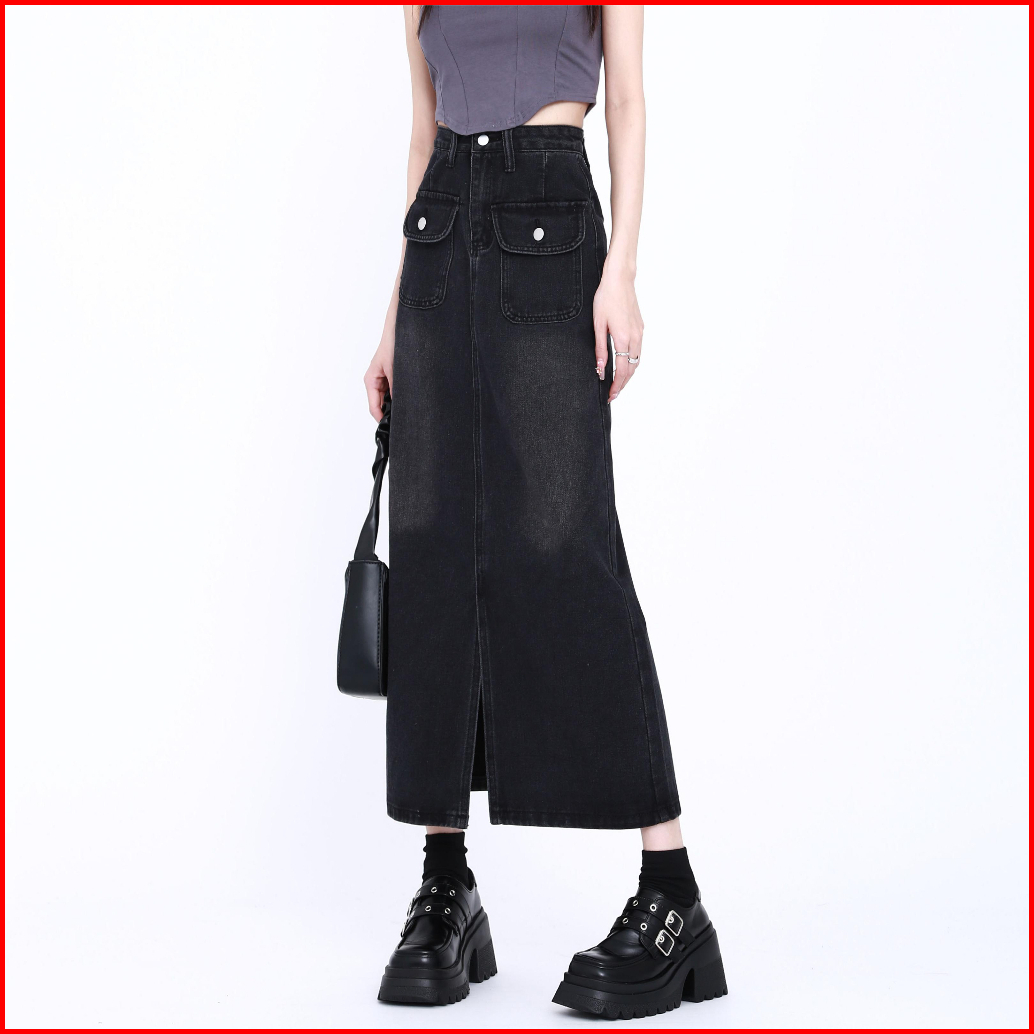 Xiaozhainv Korean Style Denim Rok Panjang Wanita Skirts Setengah High Waist 0797