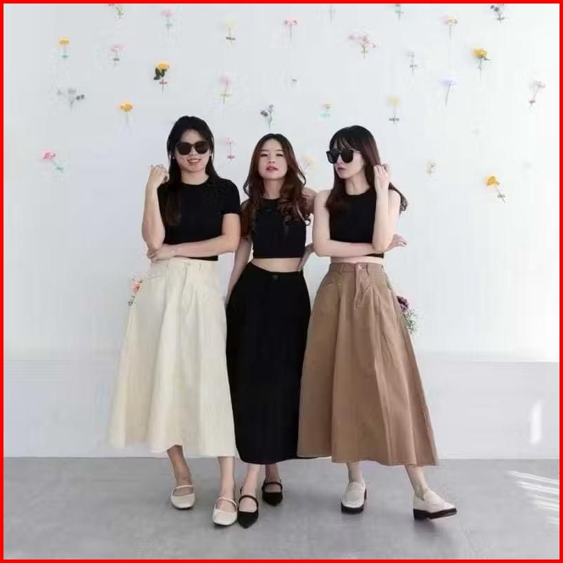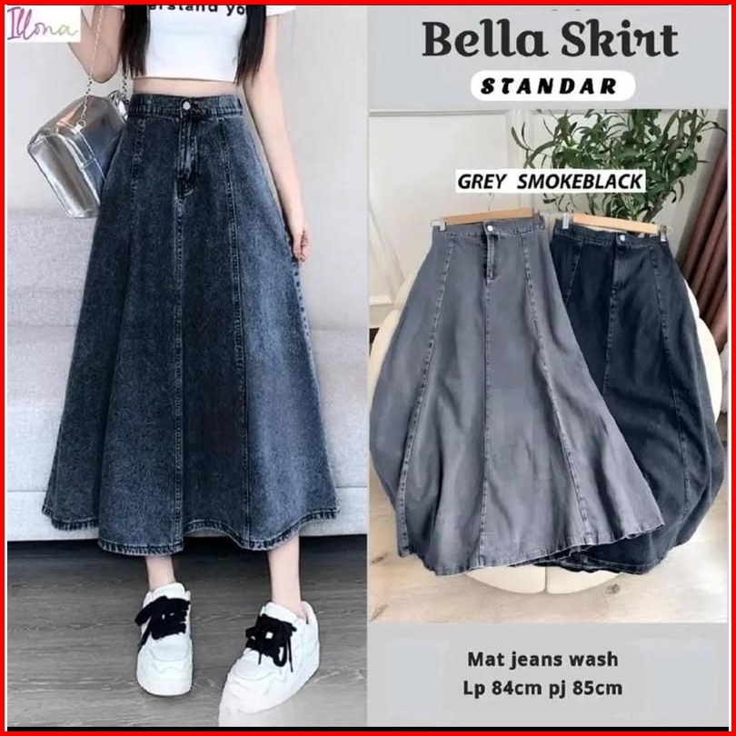 Jisso Rok Jeans Mayung Premium Wanita A-line 7 8 Model Payung Pinggang Karet-rok Wanita Highwaist Skrit Denim