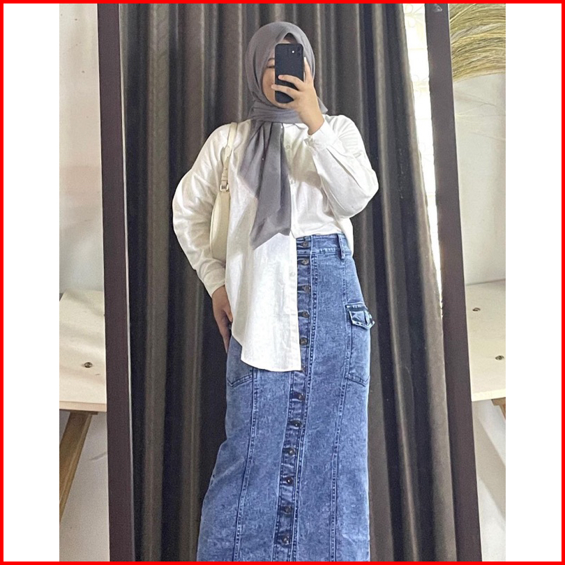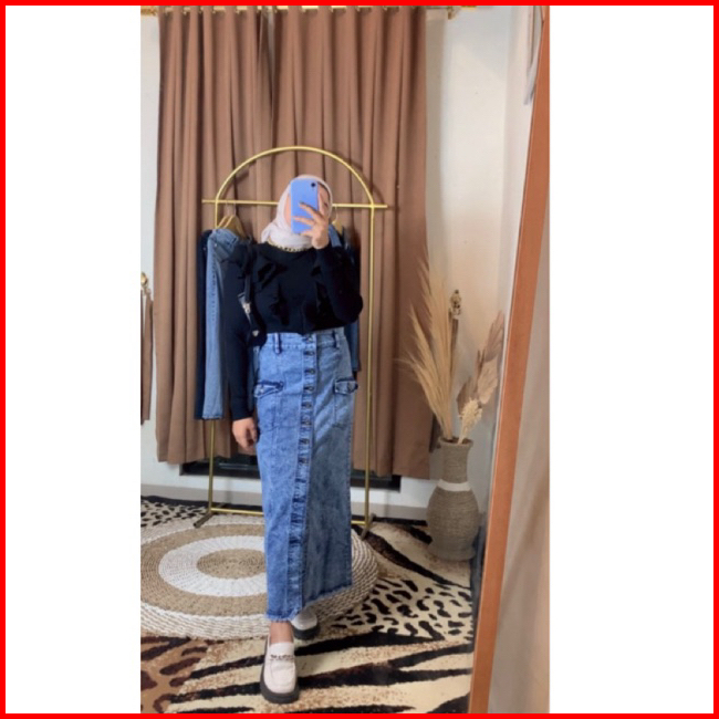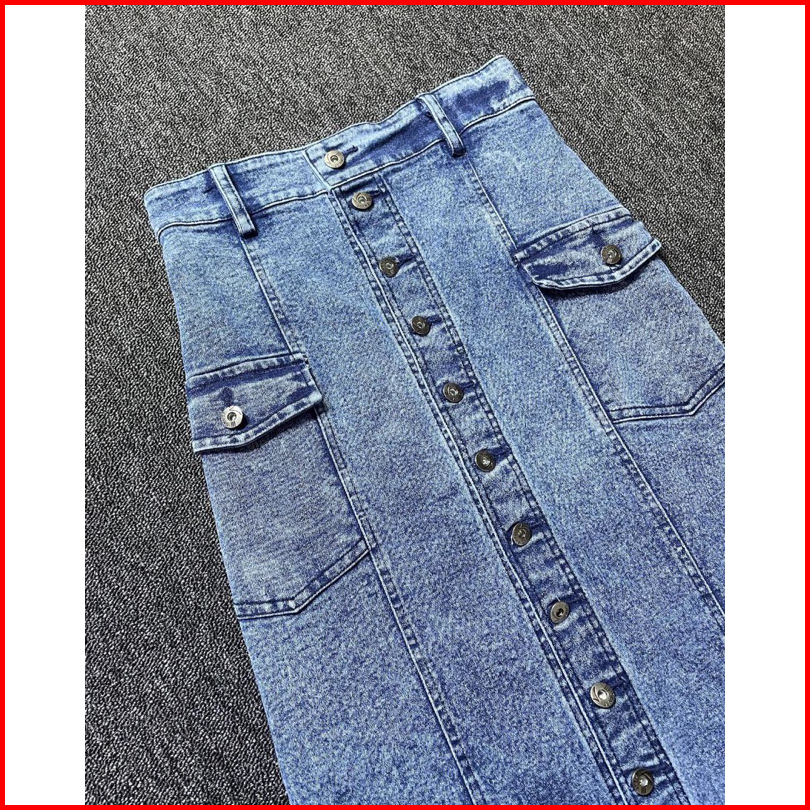 Rok Jeans Streetch Rok Wanita Rok Denim Dewasa Pinggang Karet All Size Up To 60kg-70kg Kancing Aktif Semua