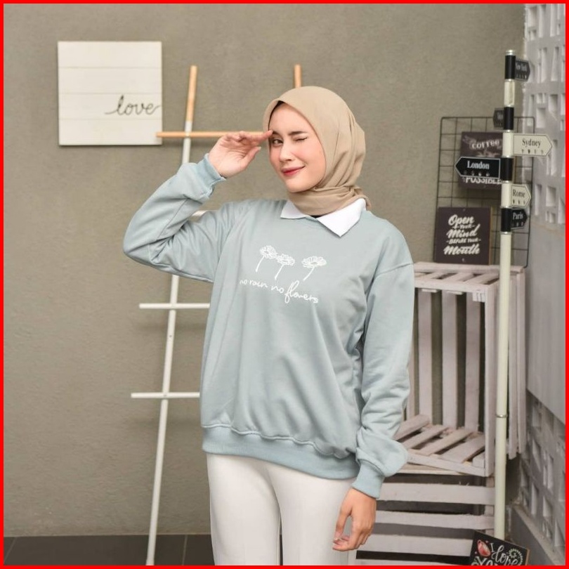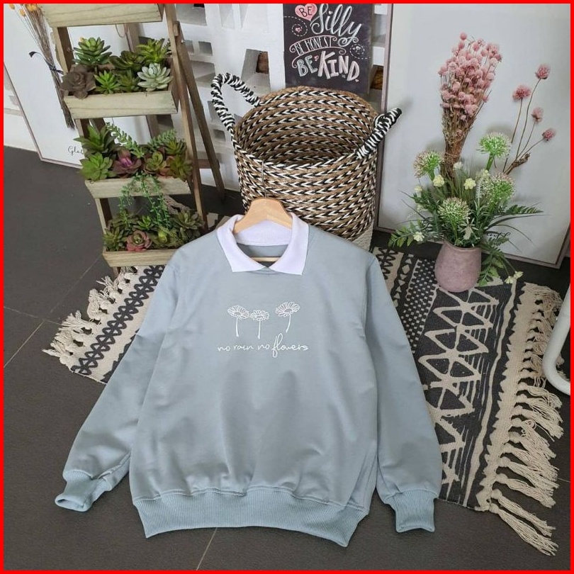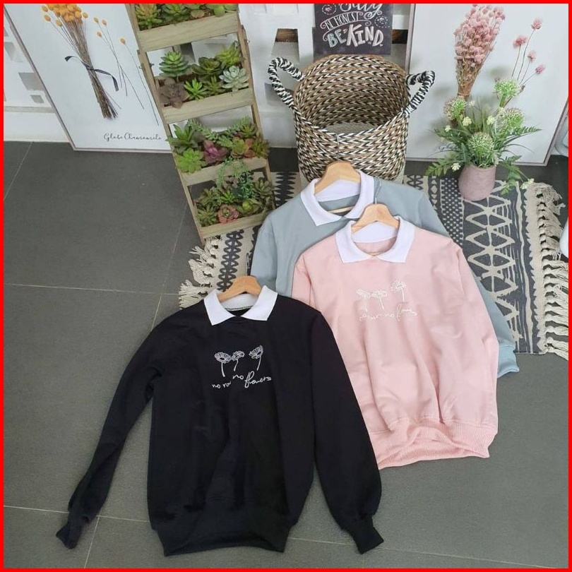 Sweater Kerah Oversize No Flower Crewneck Oversize Wanita Korean Style Sweater Oversize Wanita