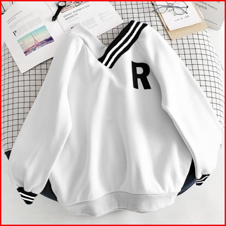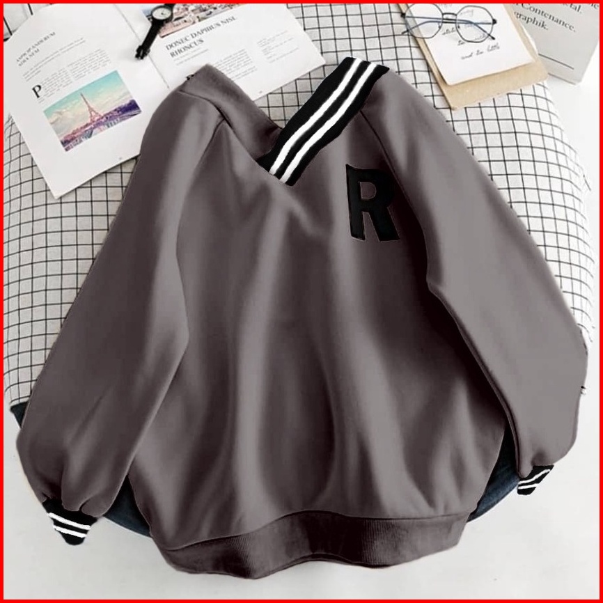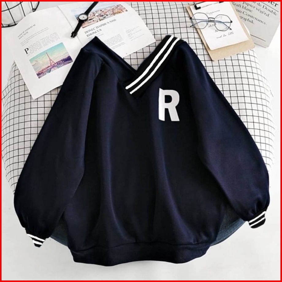 R Vneck Oversize Sweater Wanita - Sweatshirt Sweater Oversize