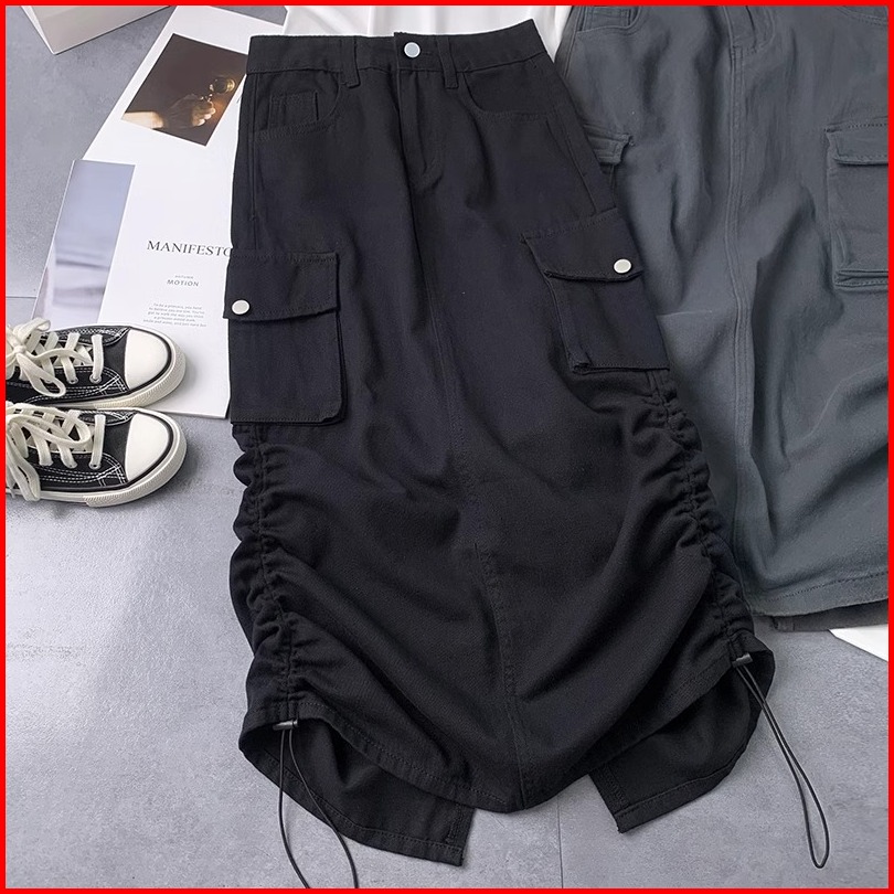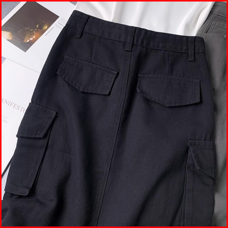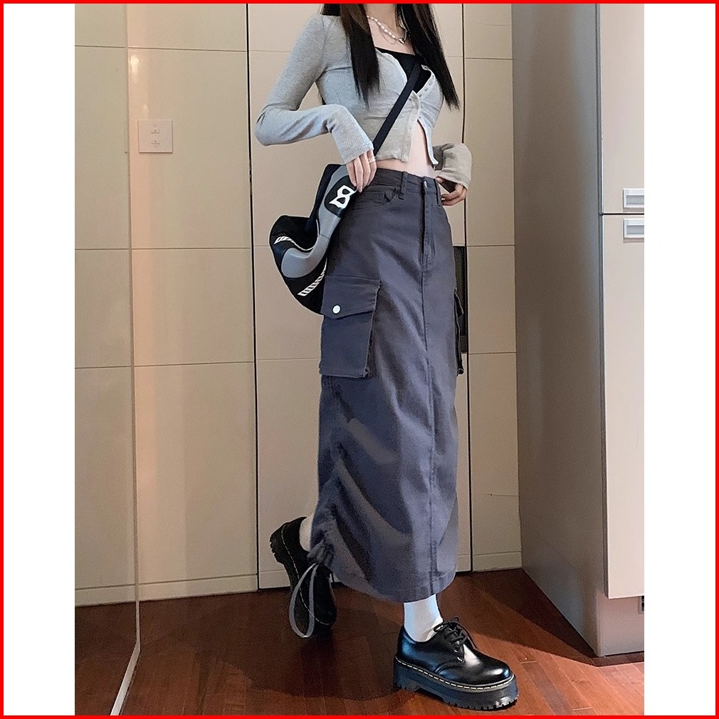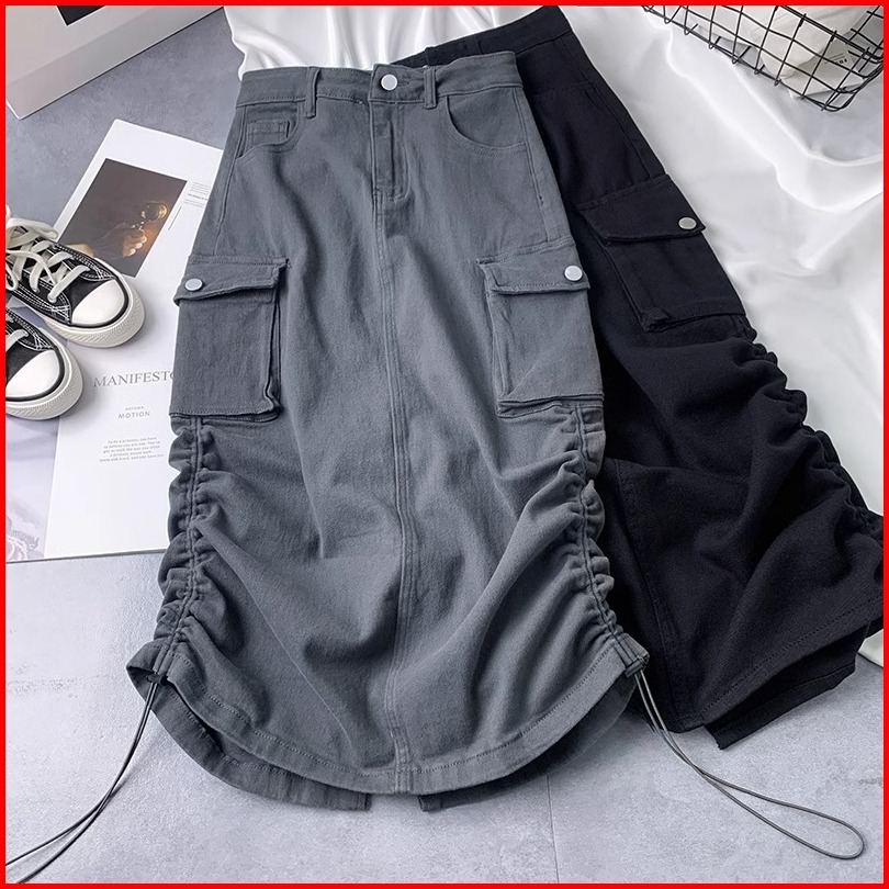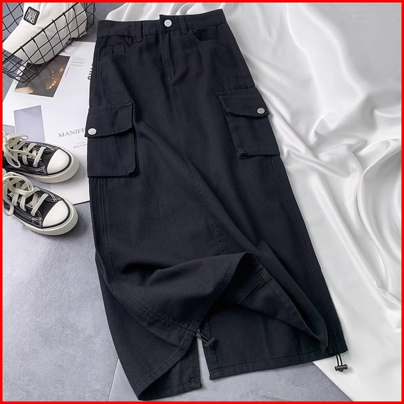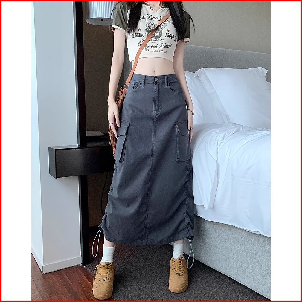 Cargo Rok Jeans Wanita Korea Style Rok Jeans A-line Rok Highwaist Rok Denim Midi