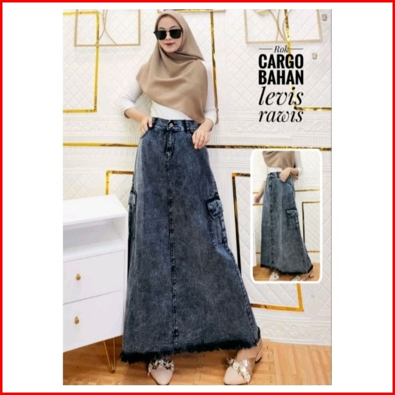 Rok Cargo Jeans Rok Cargo Premium Jeans Cargo Rawis Rok Panjang Cargo Rok Cargo Wanita Dewasa Rok Highwaist