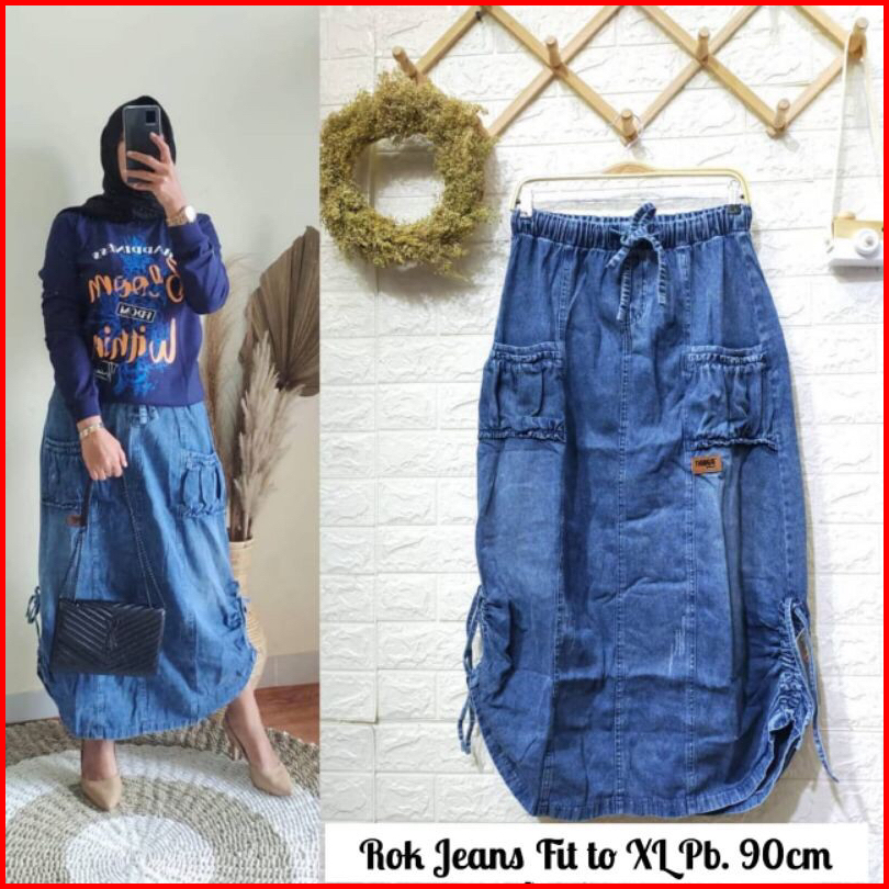 Rok Jeans Standar Rok Jeans 7 8 Bawahan Rok Rok Jeans Viral