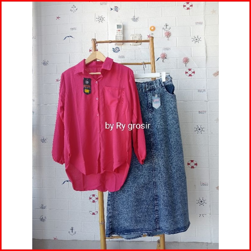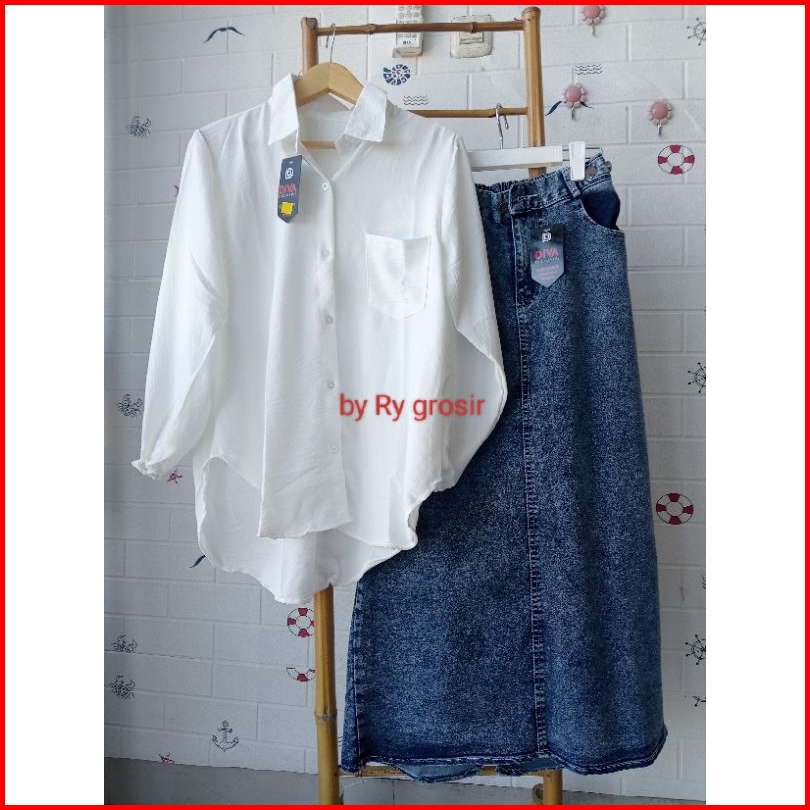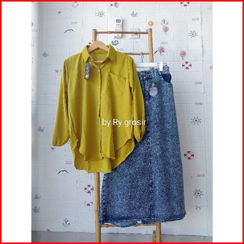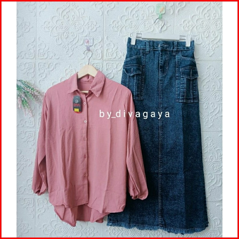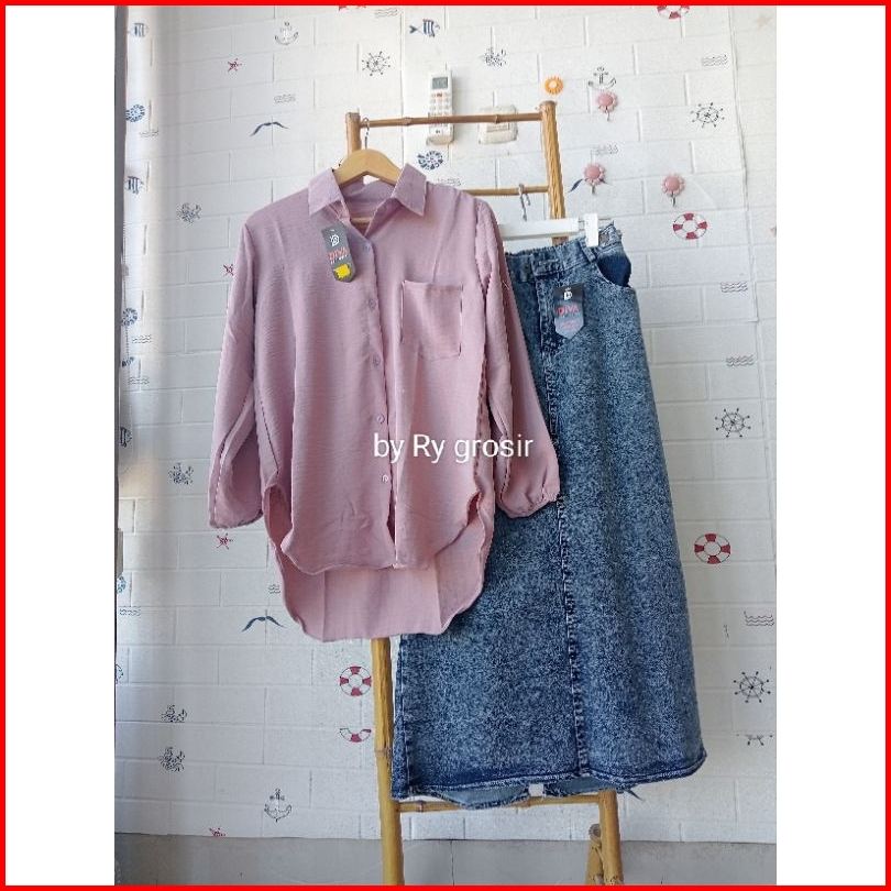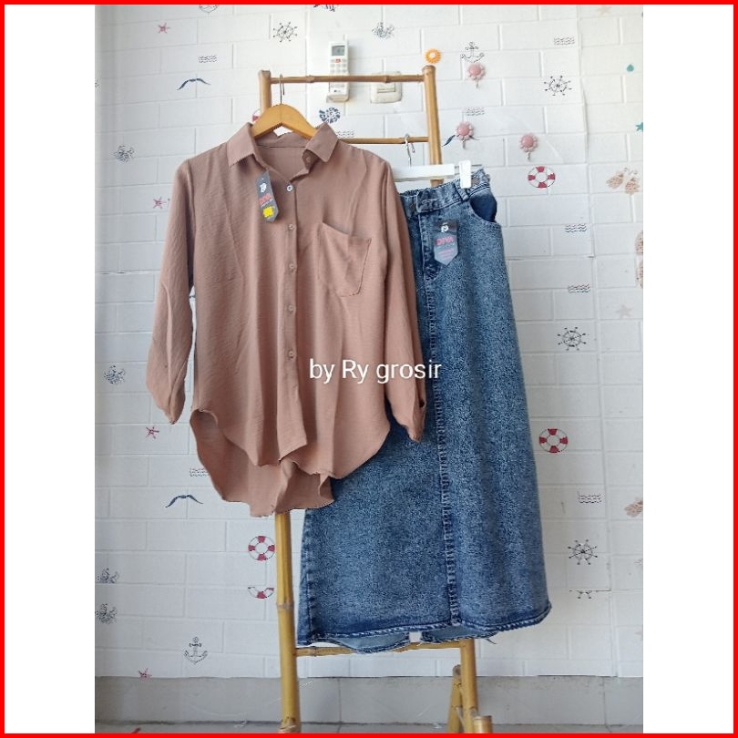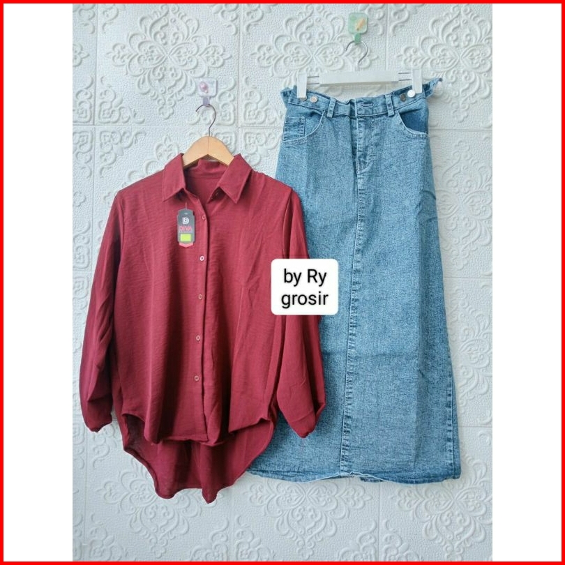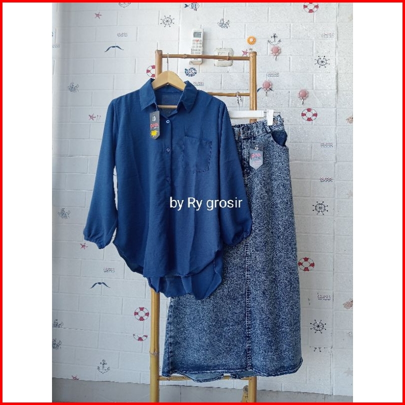 Setelan Laura Rok Span Jeans Tebal Crinkle Premium